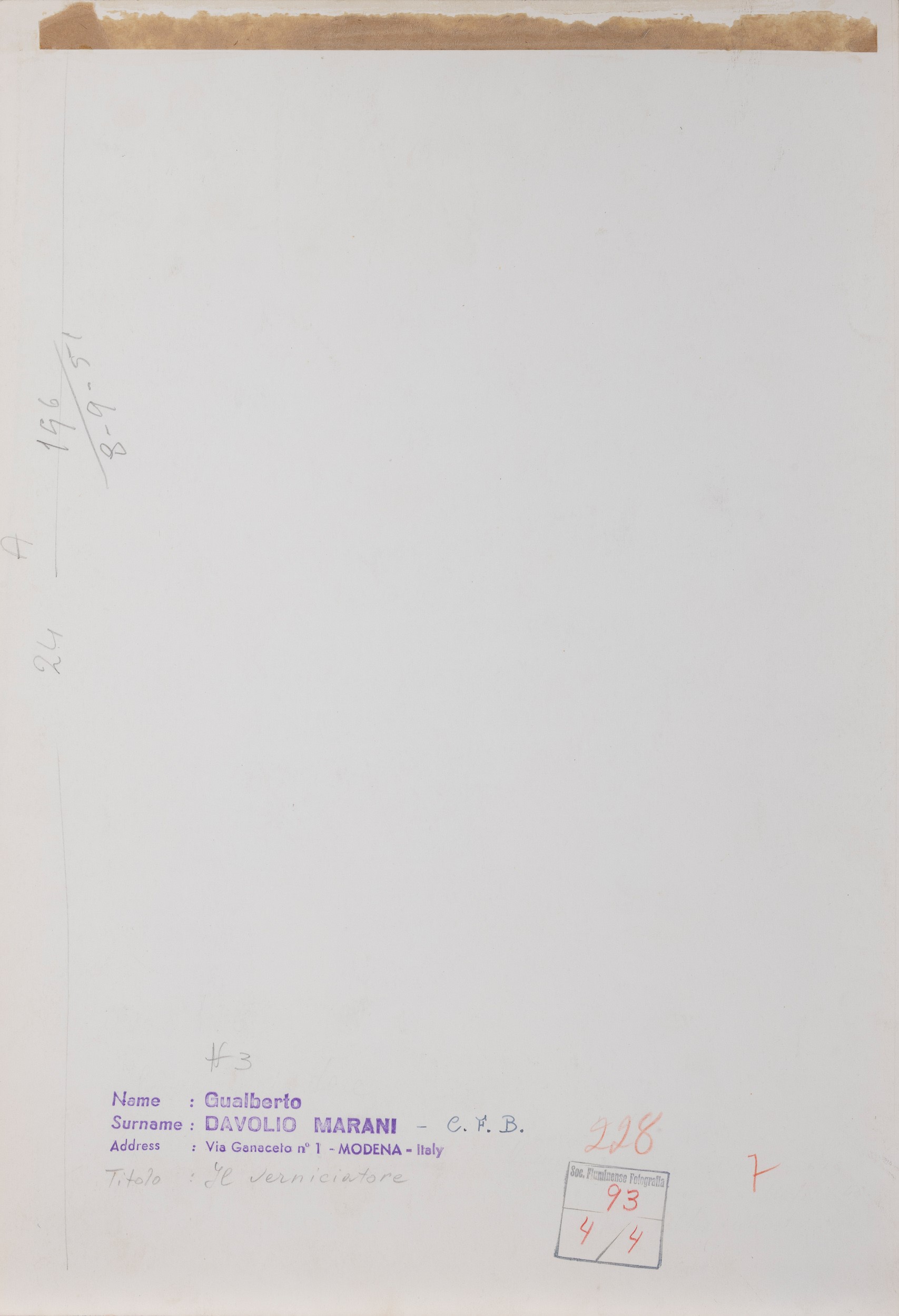 photographer’s stamp with title and date on the verso