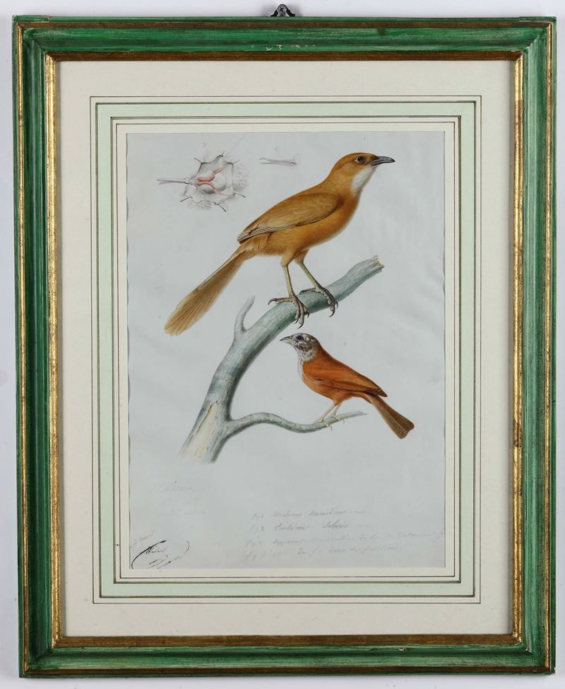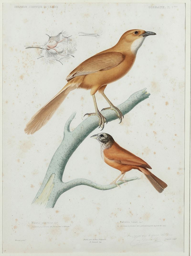 al lotto si unisce relativa incisione a colori della pagine del libro facente parte dell'Atlante degli Uccelli Europei del 1842
