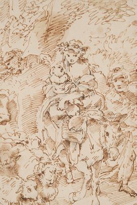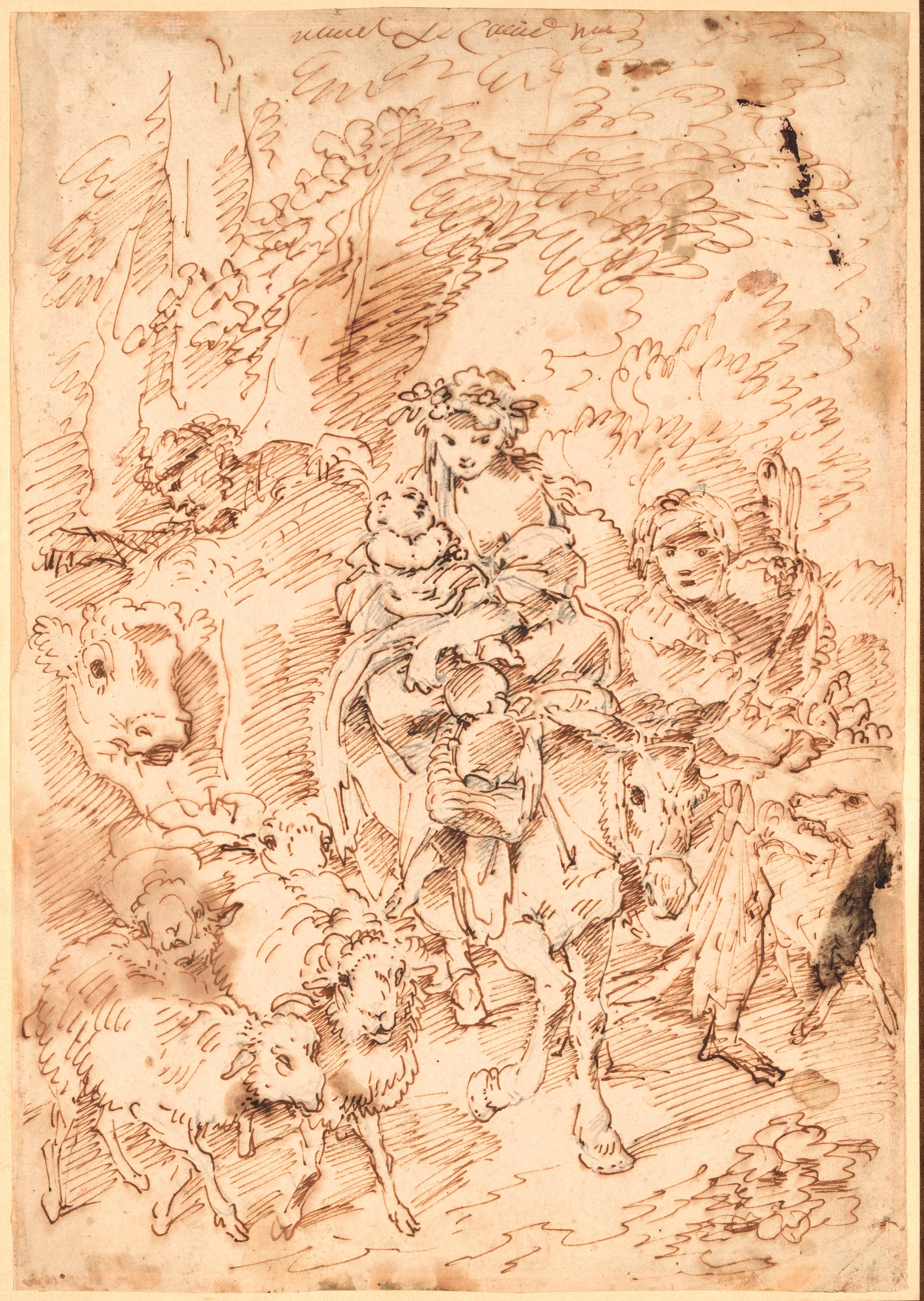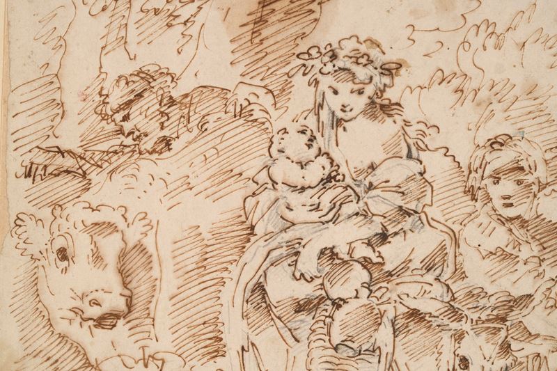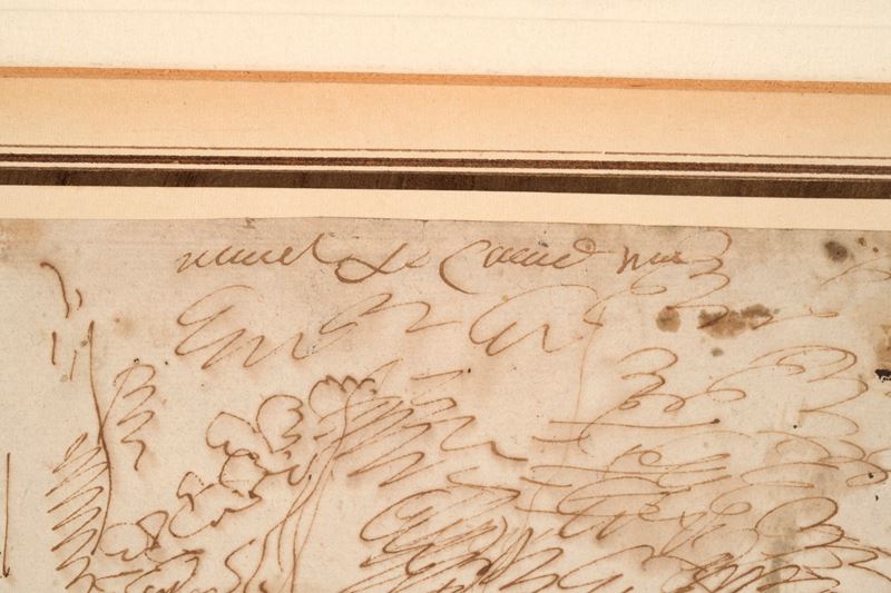 matita nera, penna e inchiostro bruno su carta