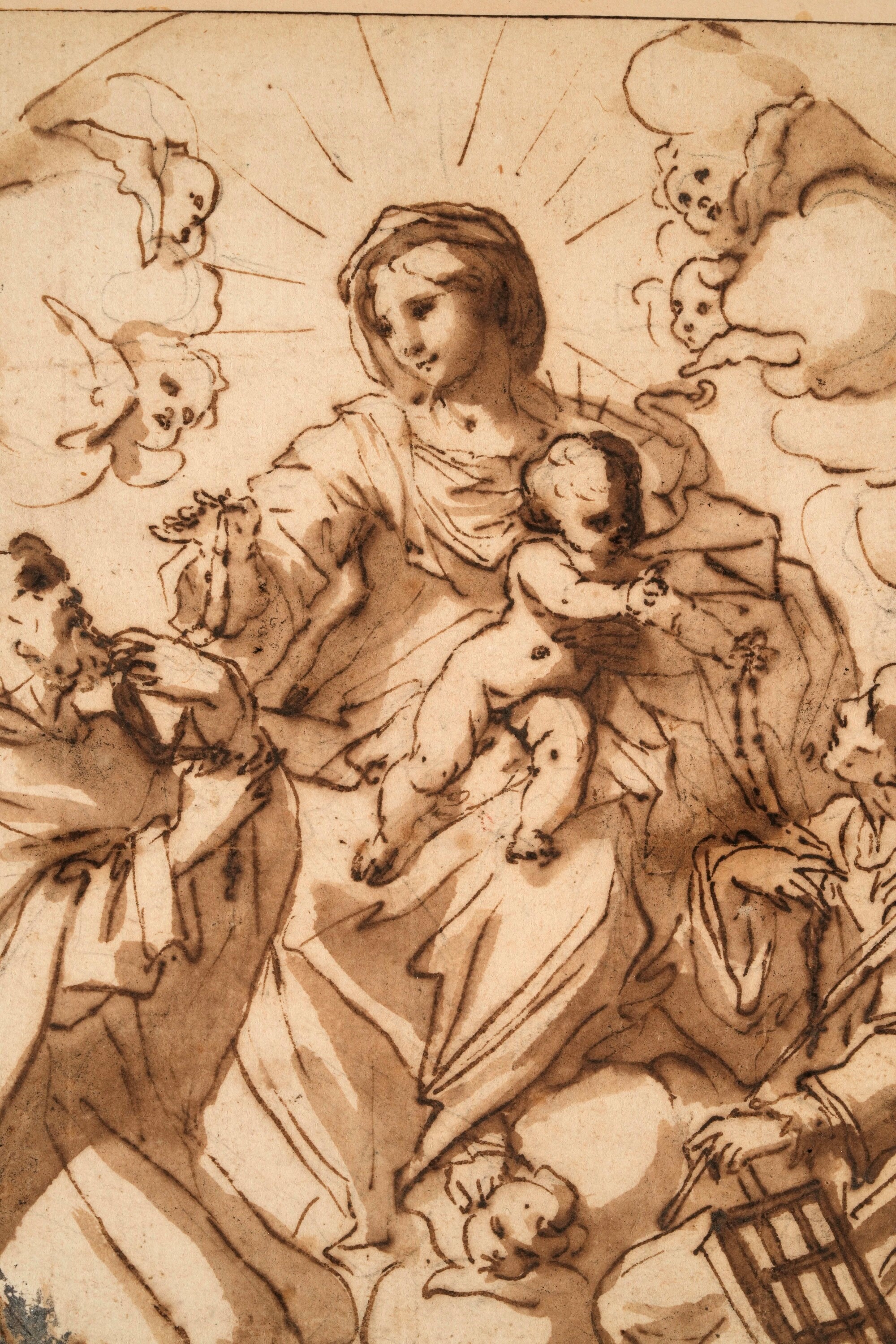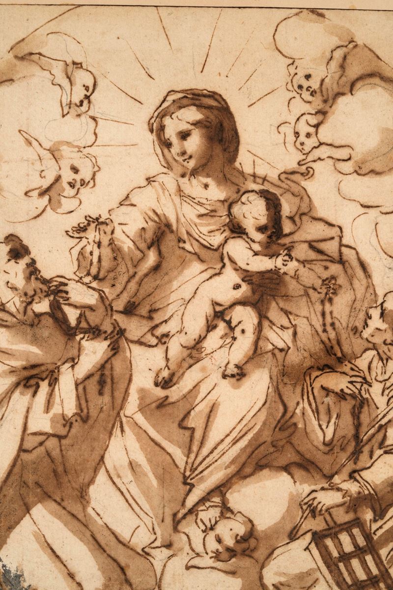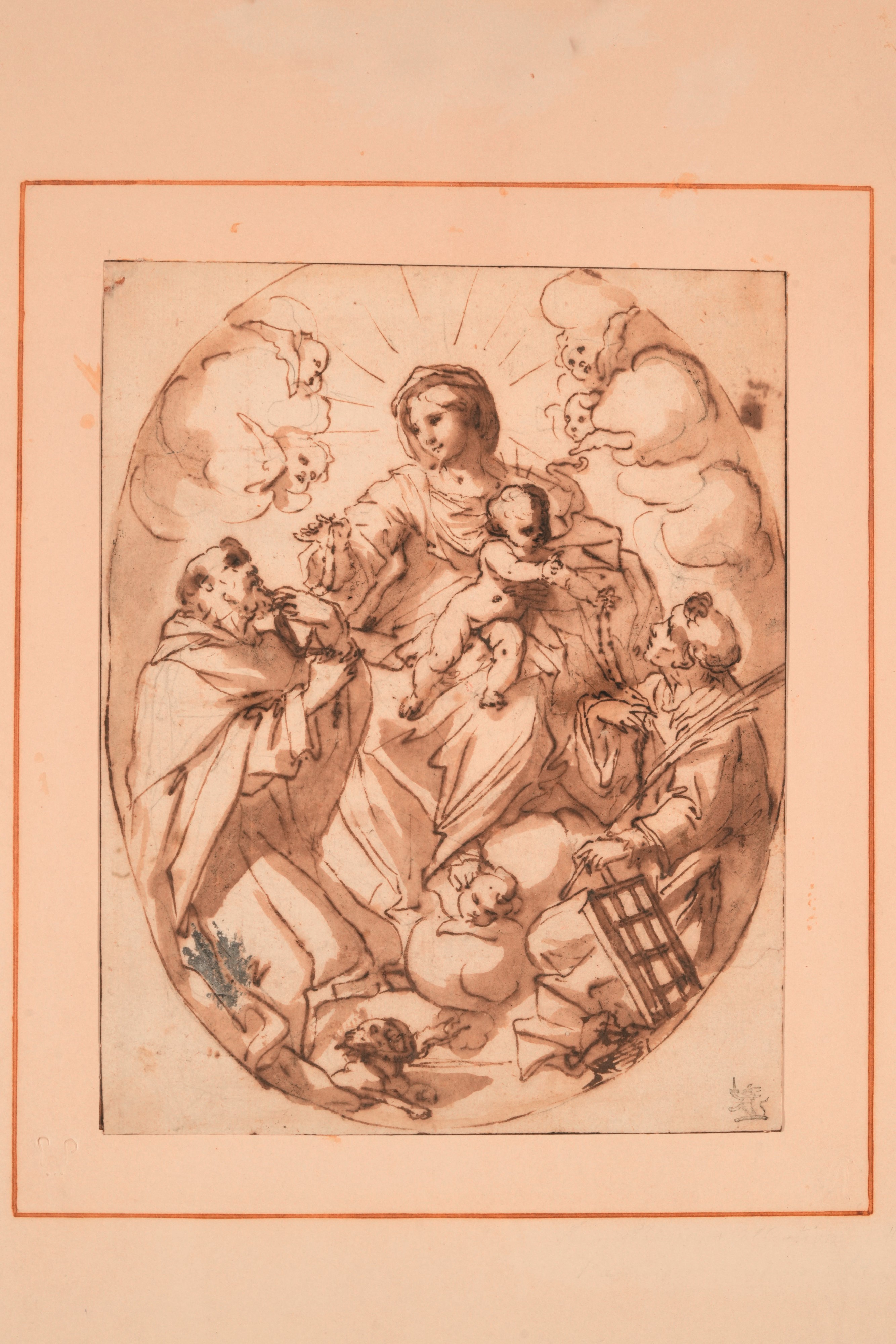Scuola genovese del XVII secolo Madonna con Bambino, san Domenico e san Lorenzo