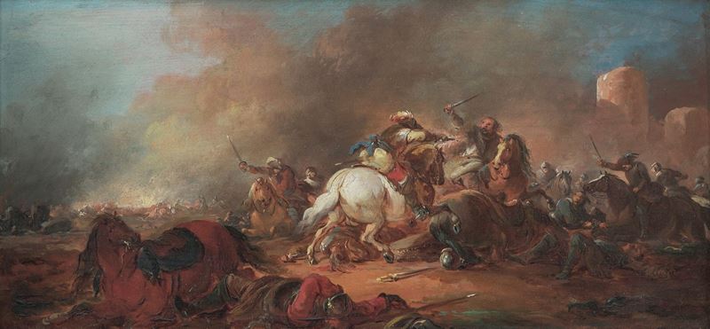 Scuola olandese del XVIII secolo Scontro di cavalleria
