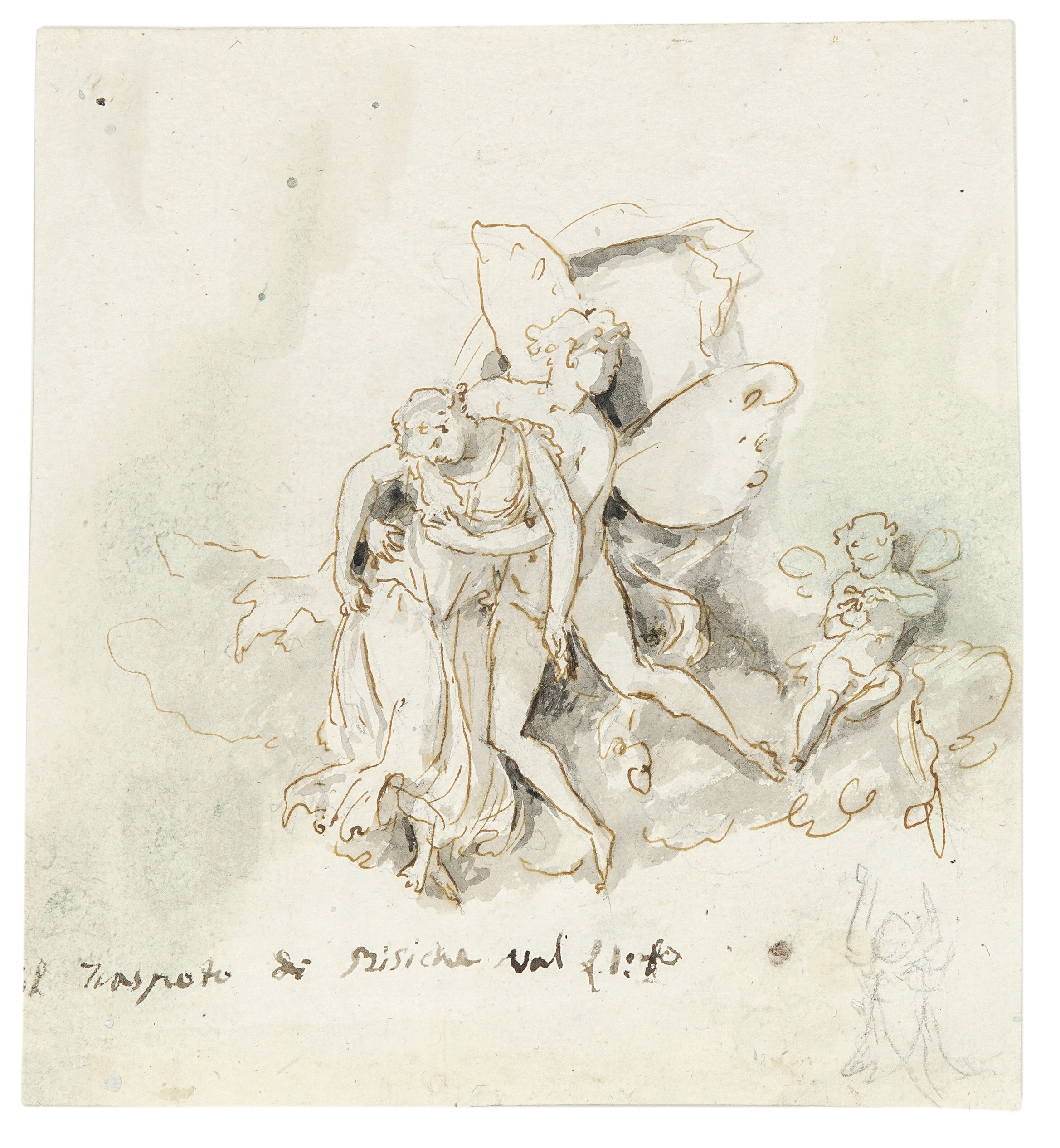 penna, inchiostro bruno e acquerello grigio su carta