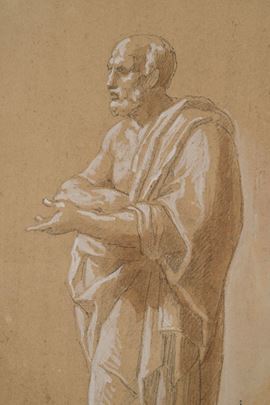 matita nera, panna, inchiostro bruno, acquerello e biacca su carta