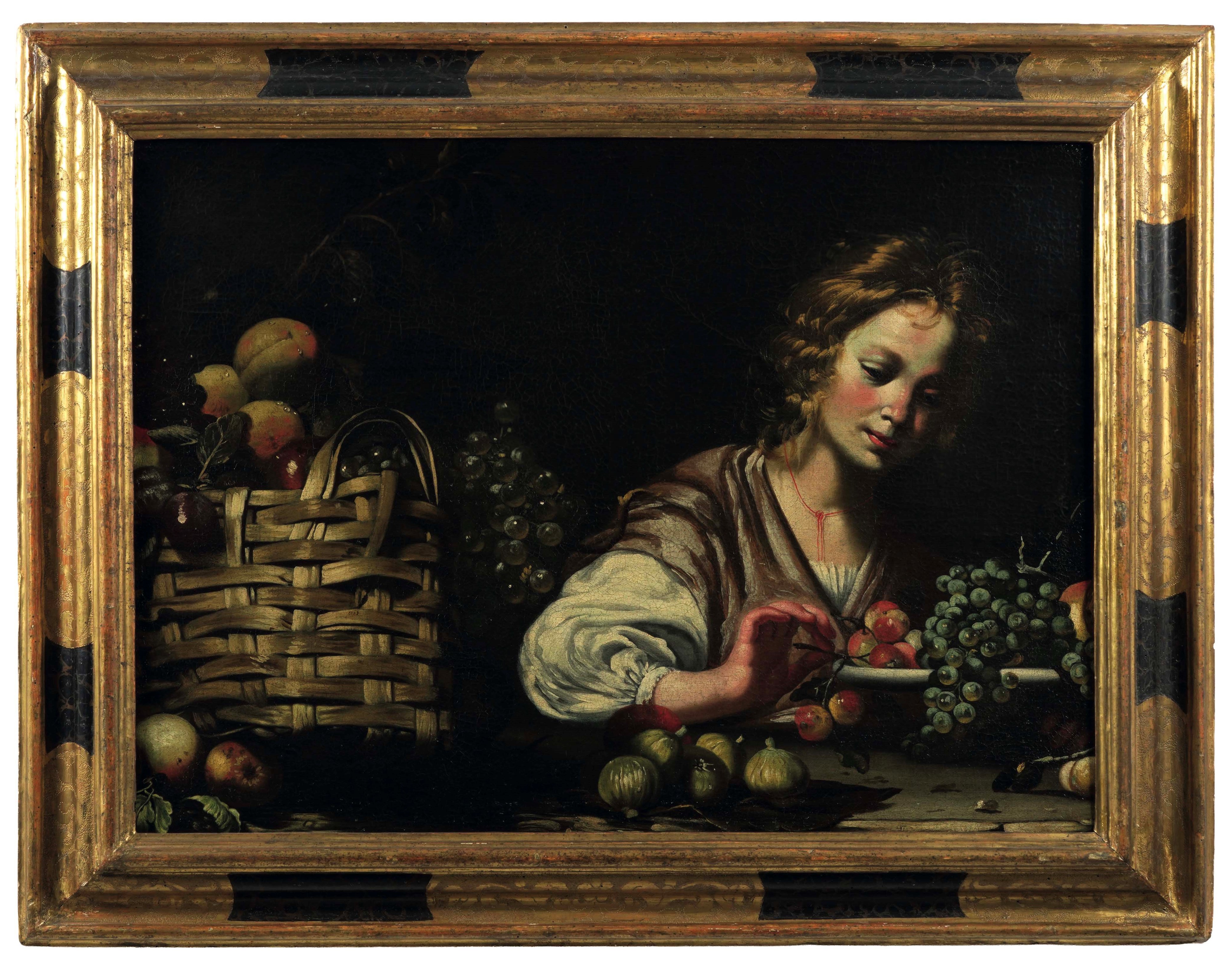 Natura morta con cesto di frutta e figura femminile