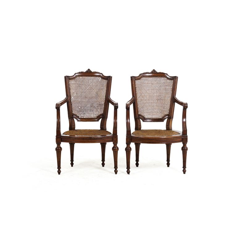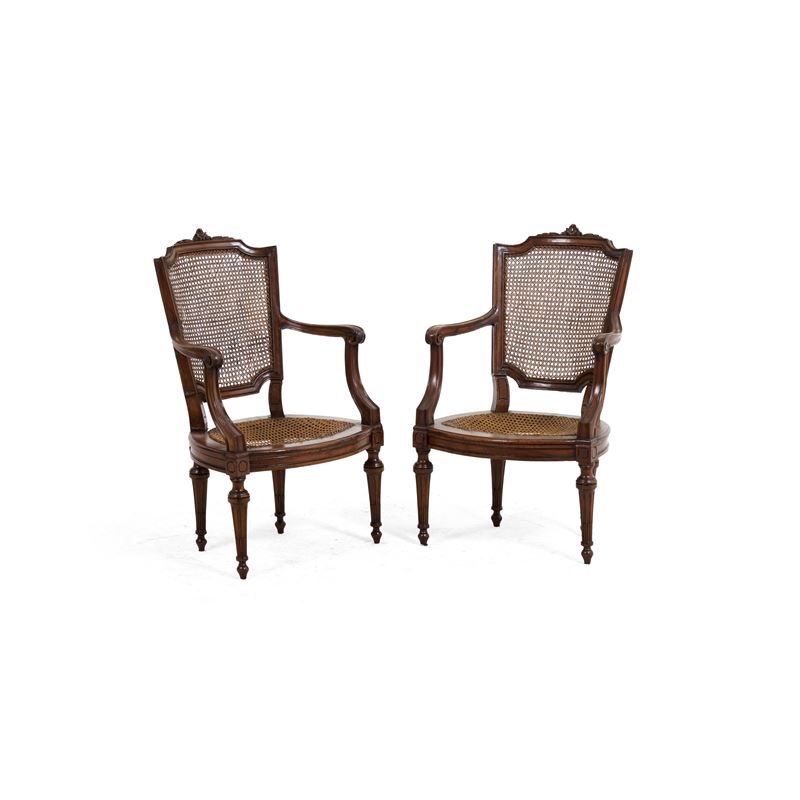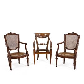 Coppia di poltrone con cannetè più sedia senza seduta