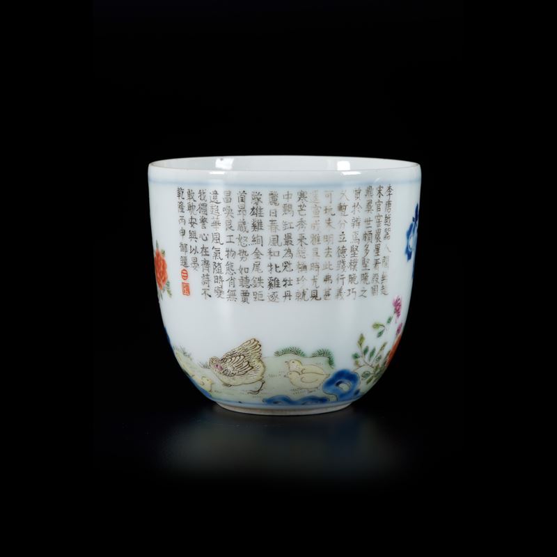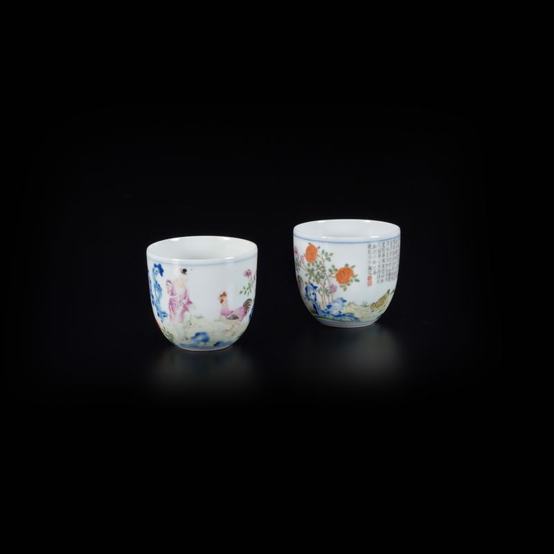 Coppia di tazzine in porcellana raffigurante scena di paesaggio con iscrizioni, Cina, XX secolo