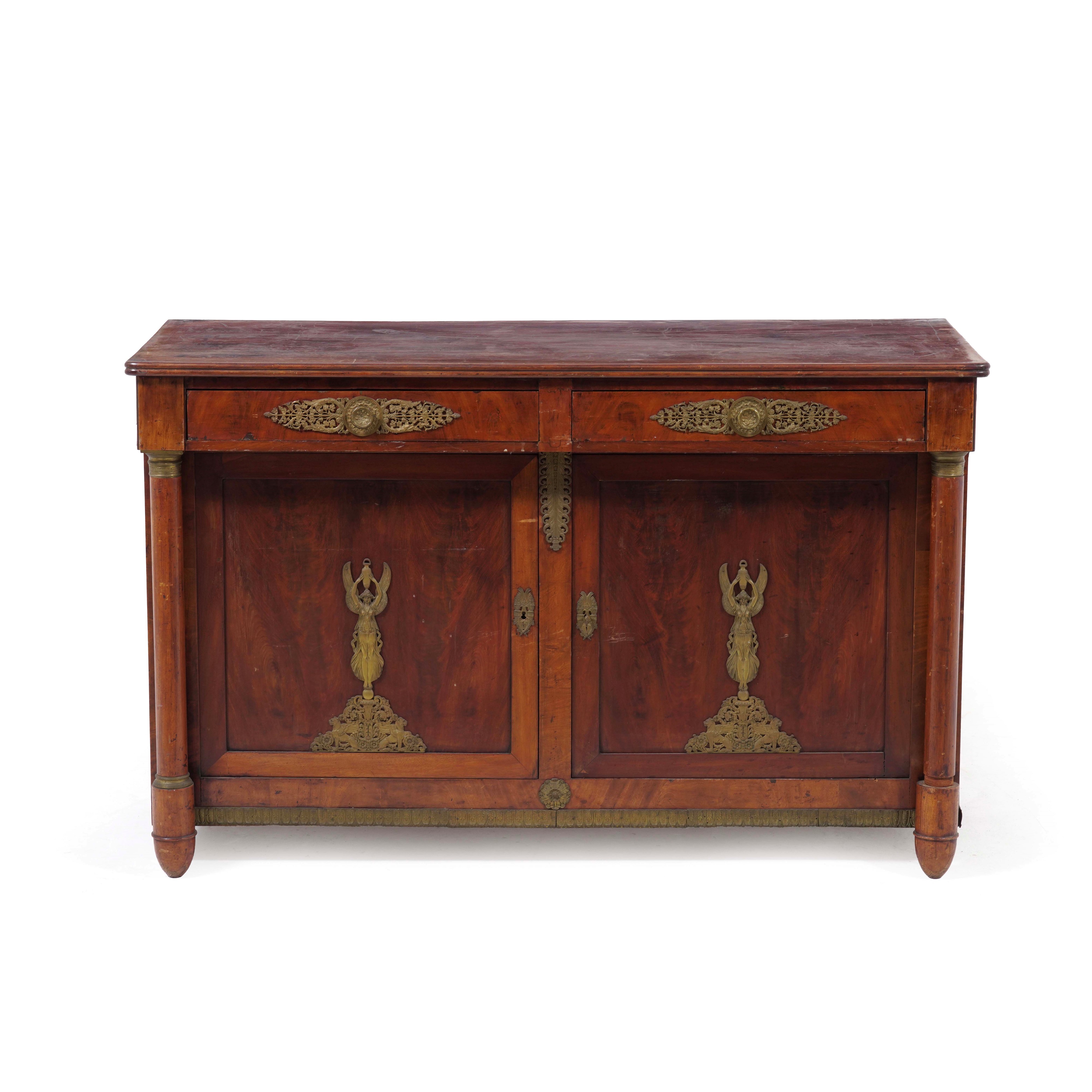 Credenza Impero lastronata in mogano. XIX secolo