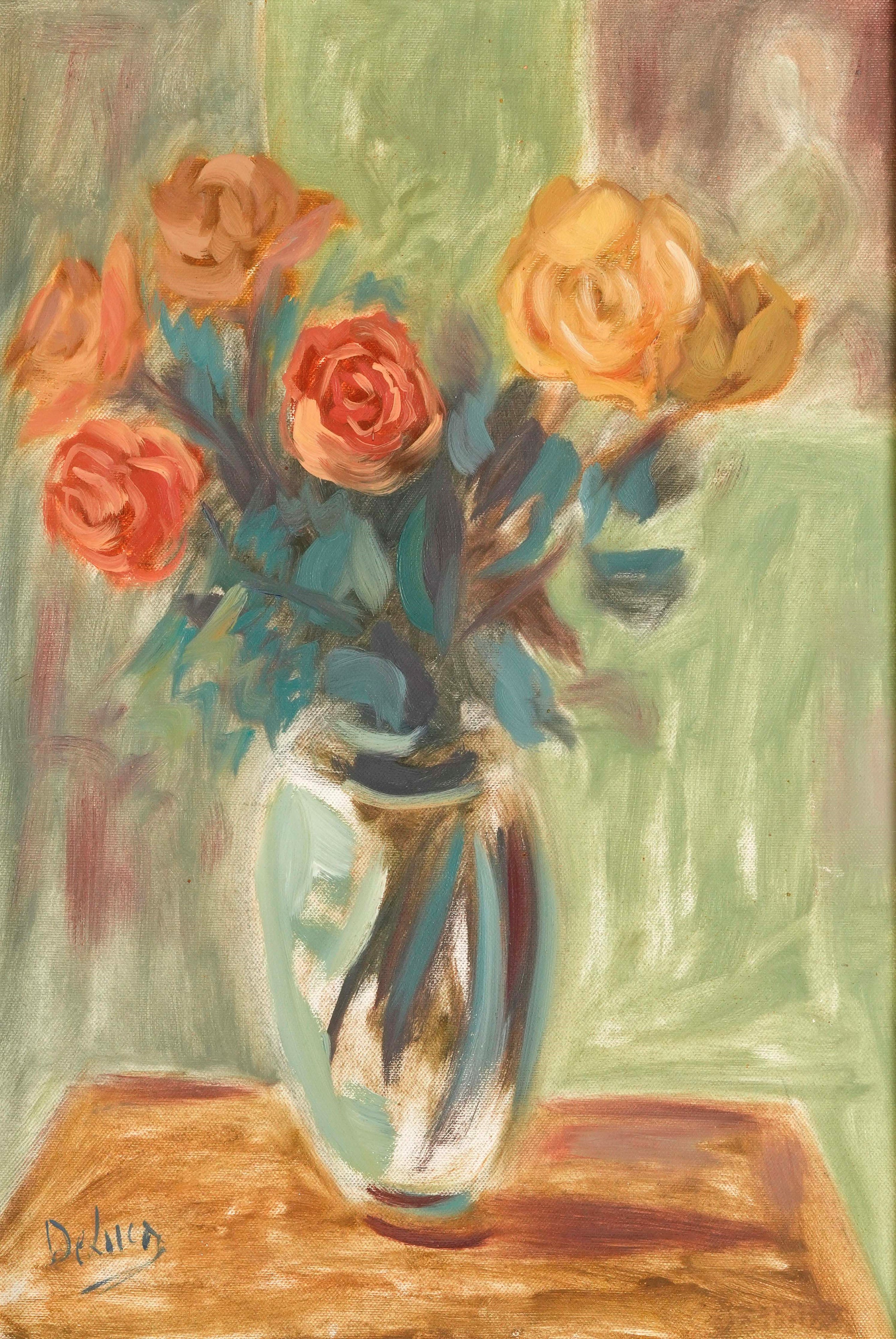 Dipinto rappresentante vaso con fiori, firmato "De Luca"