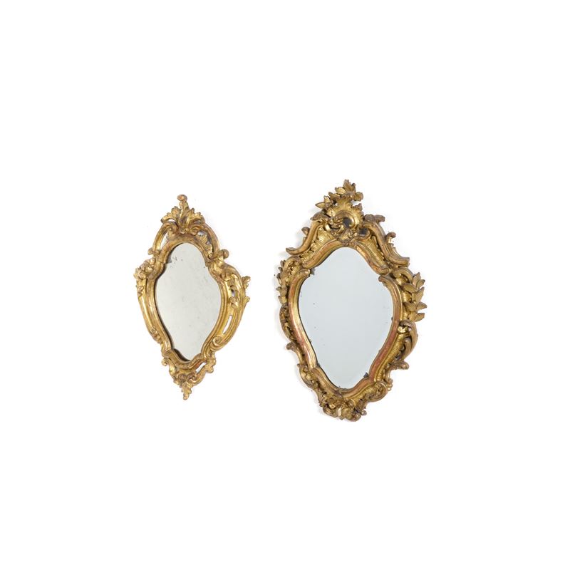 Due specchiere in legno intagliato e dorato. XVIII secolo