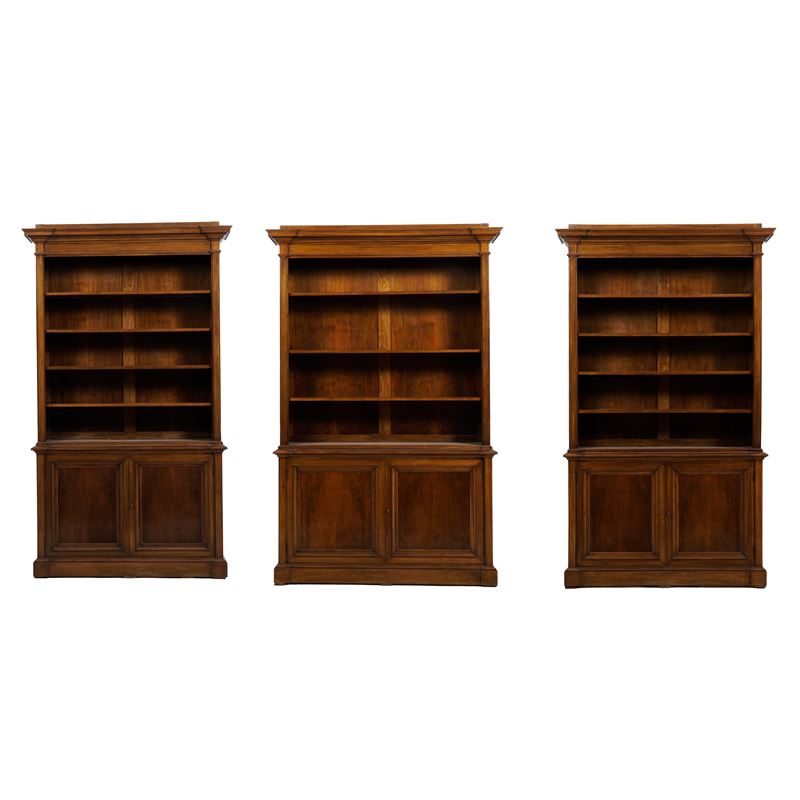 Gruppo di tre librerie doppio corpo in stile seicentesco