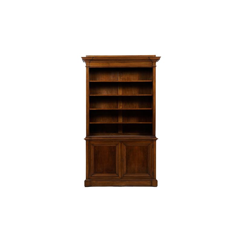 Parte inferiore a due sportelli modanati. Parte superiore a ripiani a giorno, cappello modanato