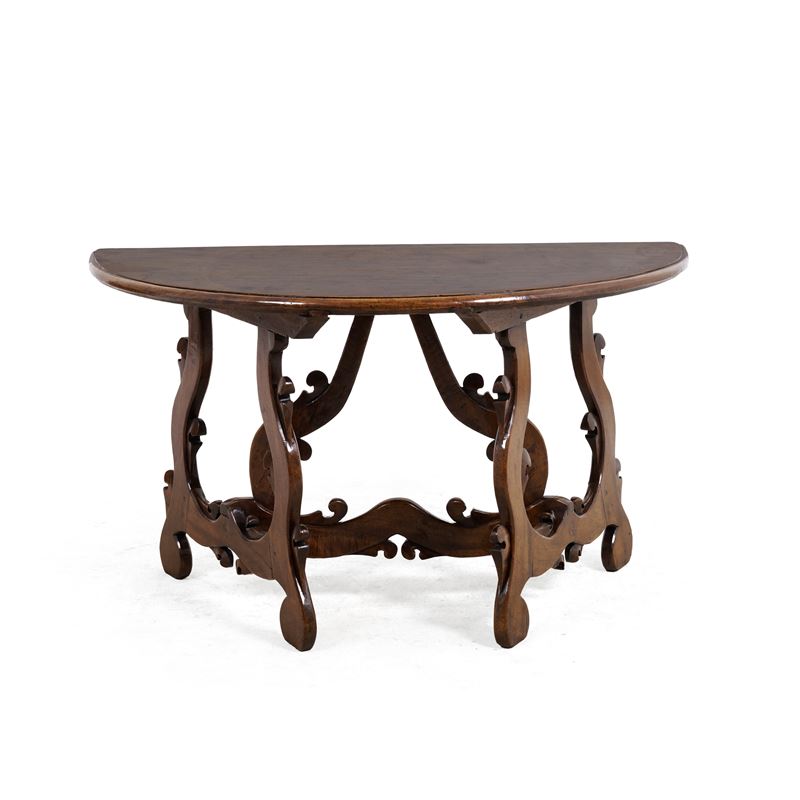 Gambe a lira, traverse sagomate, piano a mezzaluna