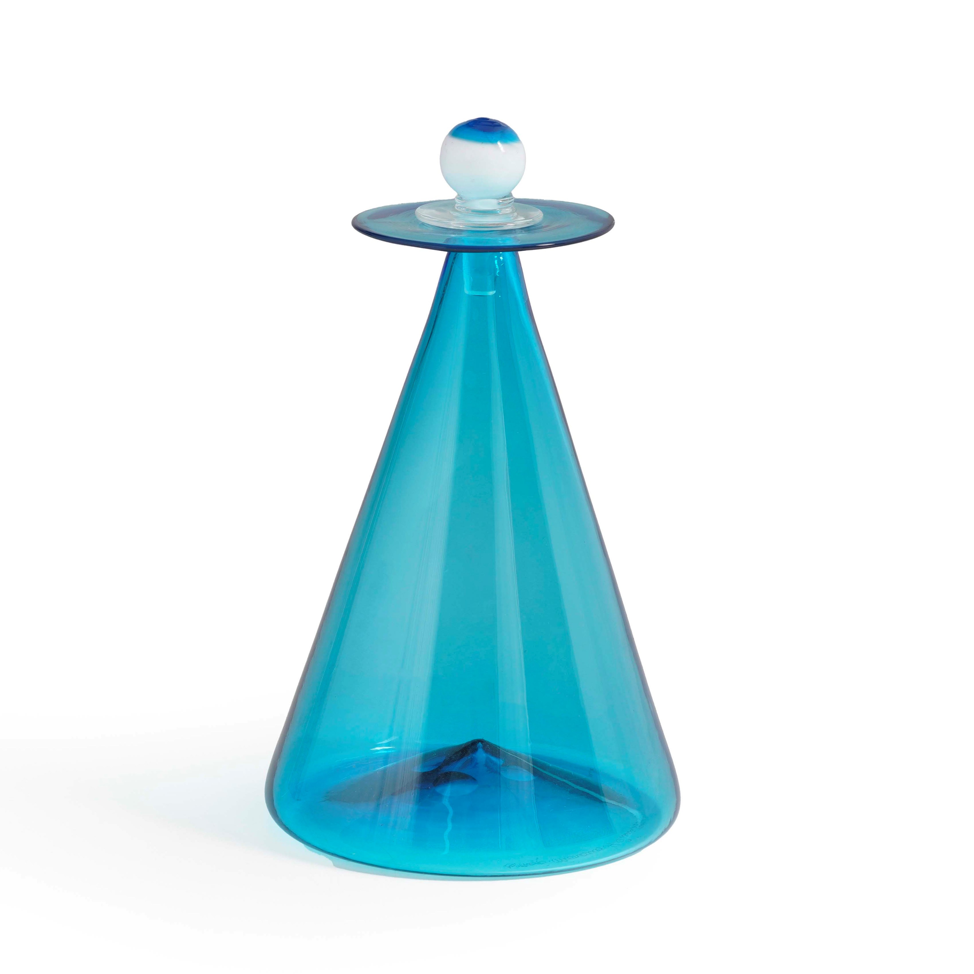 Vetro di Murano soffiato, trasparente, lattimo e colorato.
