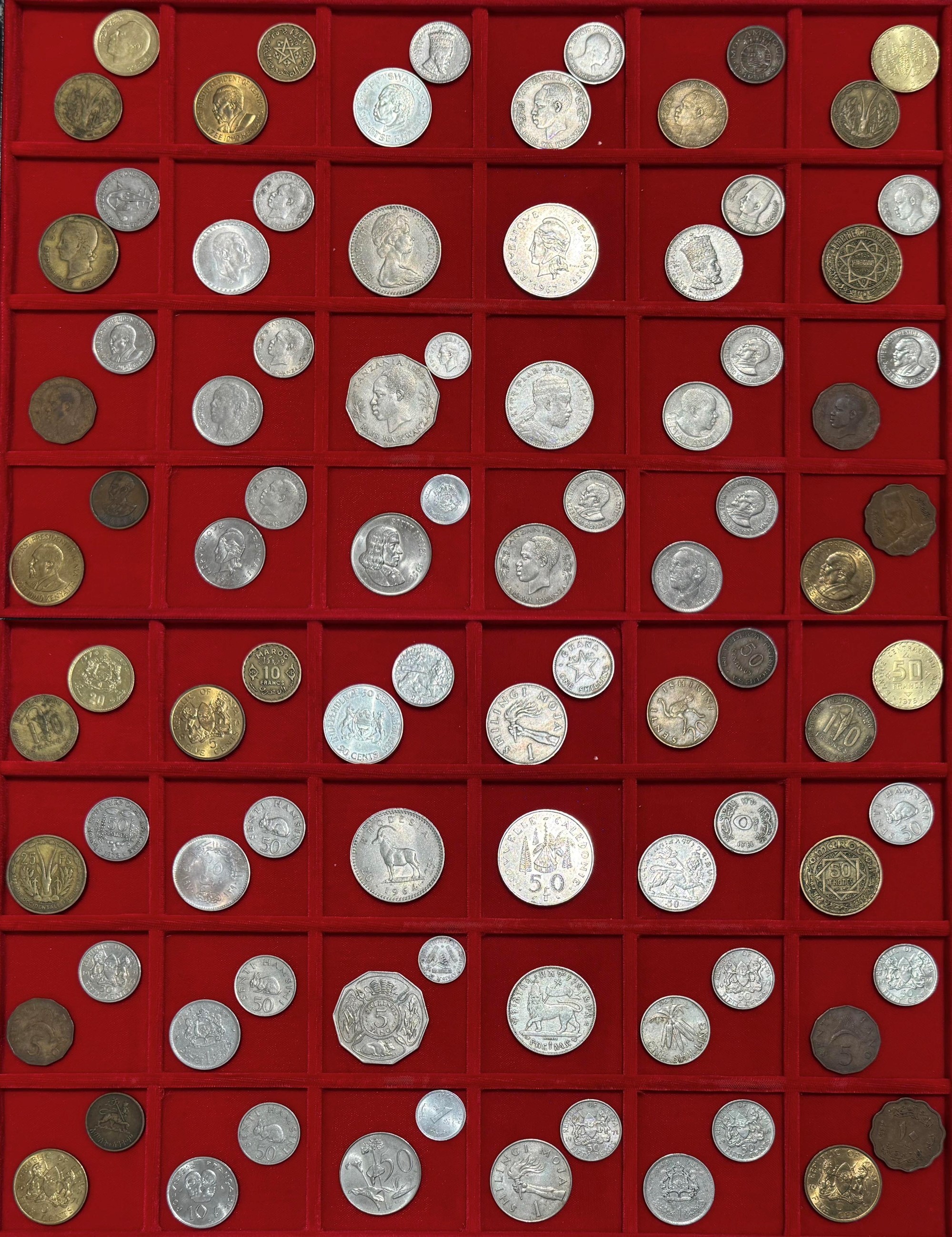 Monetazione mista coniata in diversi stati Africani e Oceanici, tra cui:Africa Occidentale Francese, Botswana, Egitto, Etiopia, Ghana, Kenya, Malawi, Mali, Marocco, Mozambico, Nuova Caledonia, Polinesia Francese, Rhodesia, Sud Africa, Tanzania. Esemplari in argento e altri metalli. Conservazioni varie.