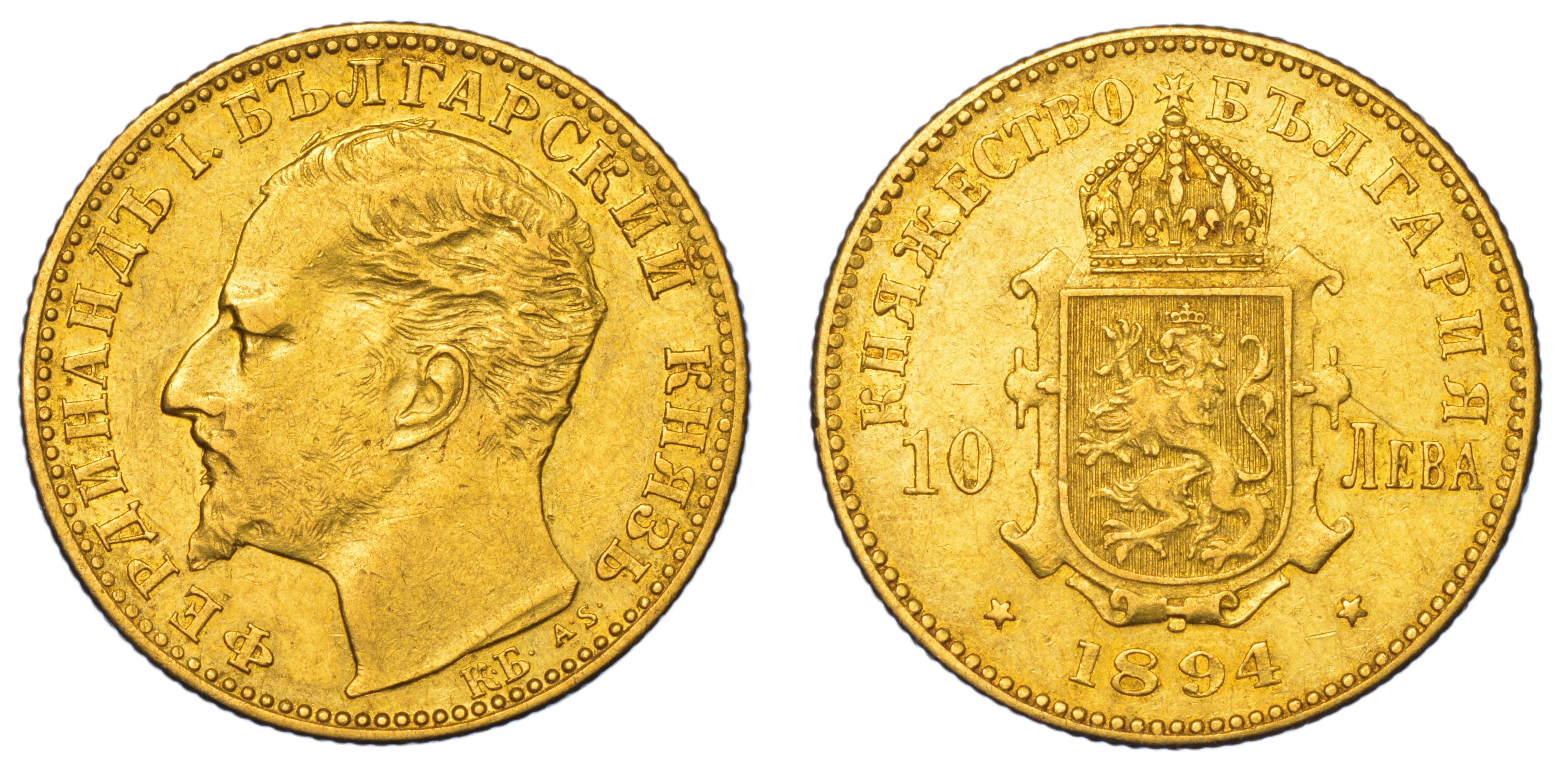 BULGARIA. FERDINAND I, 1887-1908. 10 Leva 1894.