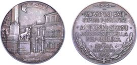 CITTA' DEL VATICANO. Giovanni XXIII, 1958-1963. Medaglia straordinaria in argento 1963. Per la visita del Papa in Quirinale.
