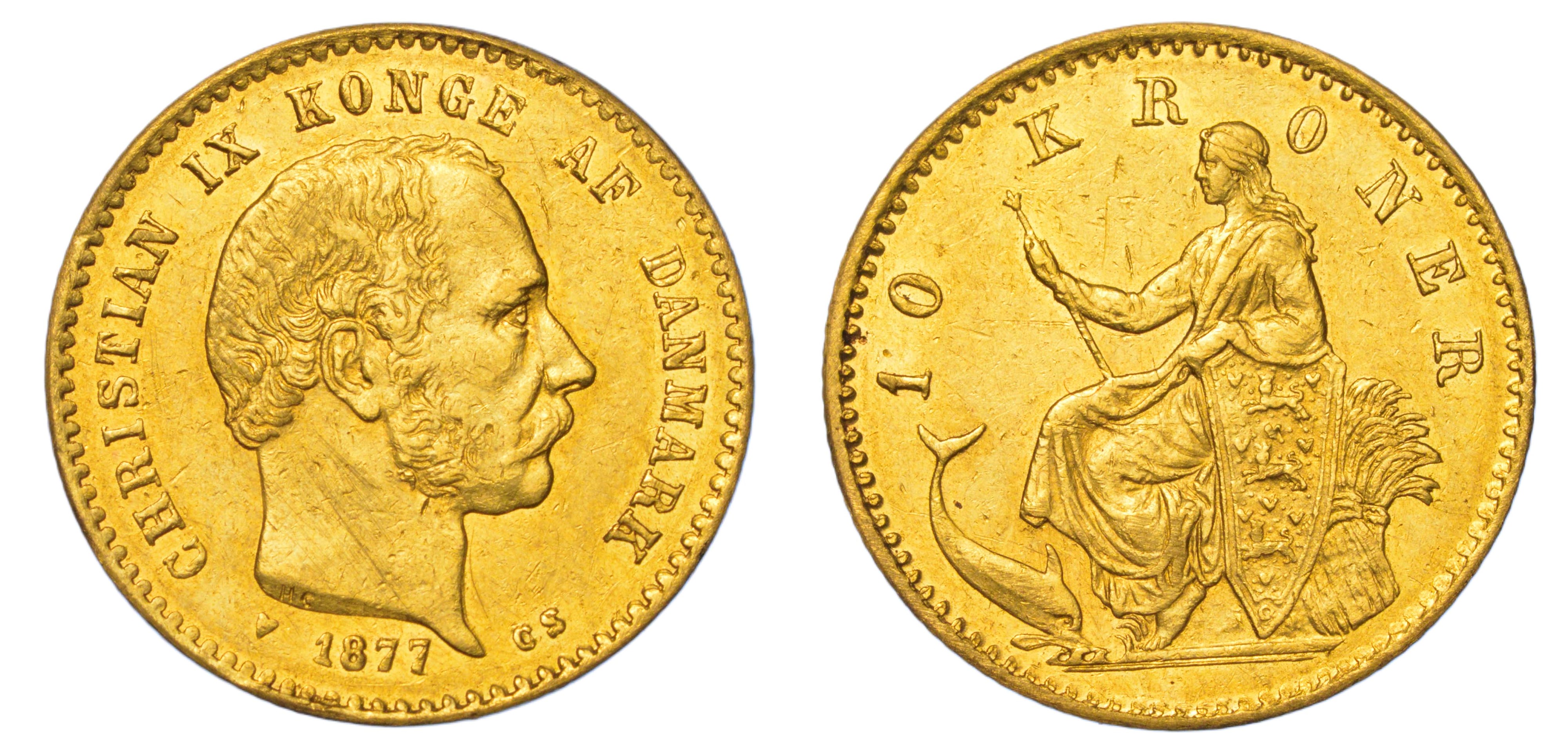DANIMARCA. CHRISTIAN IX, 1863-1906. 10 Kroner 1877.