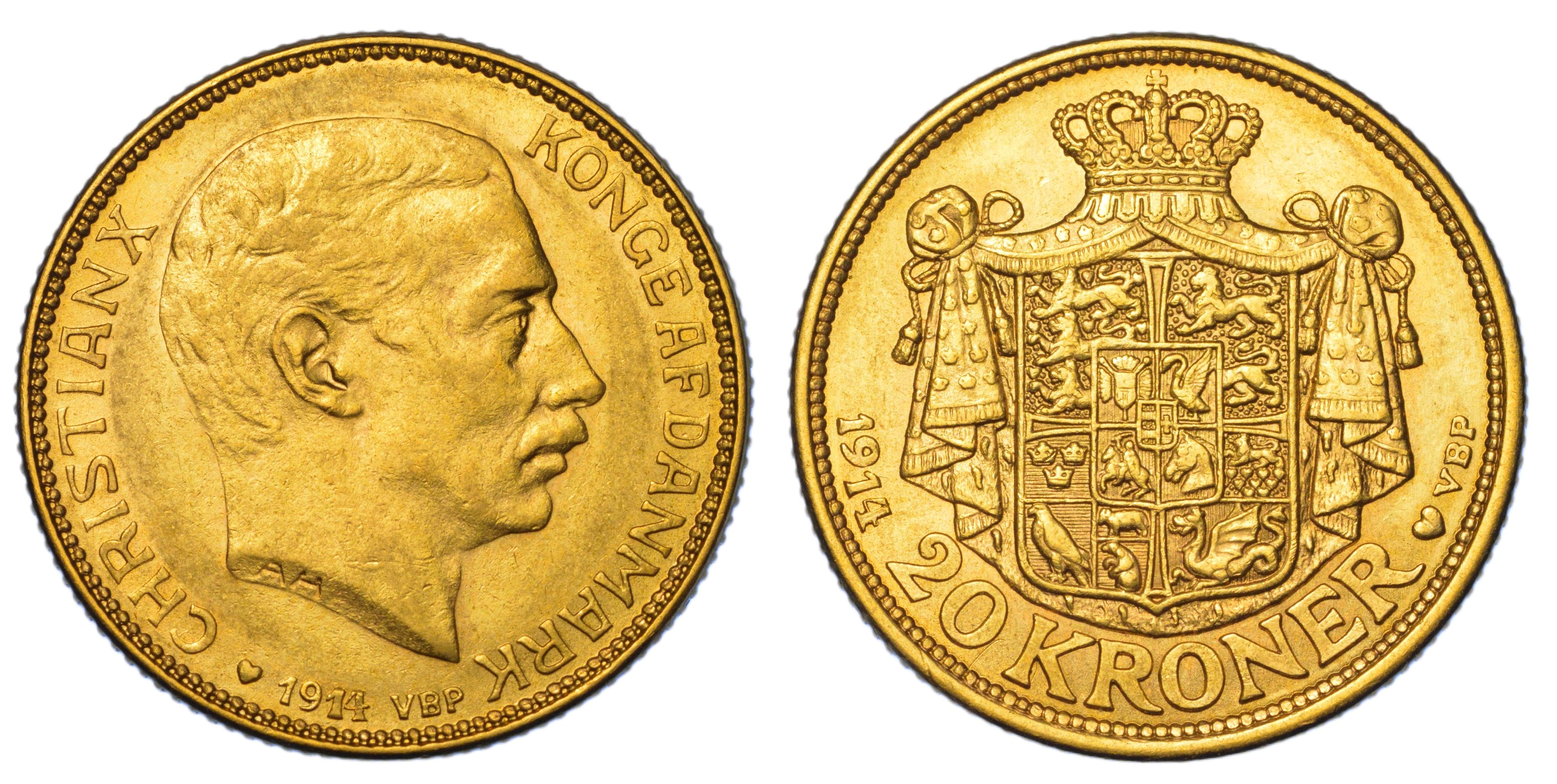 DANIMARCA. CHRISTIAN X, 1912-1947. 20 Kroner 1914.