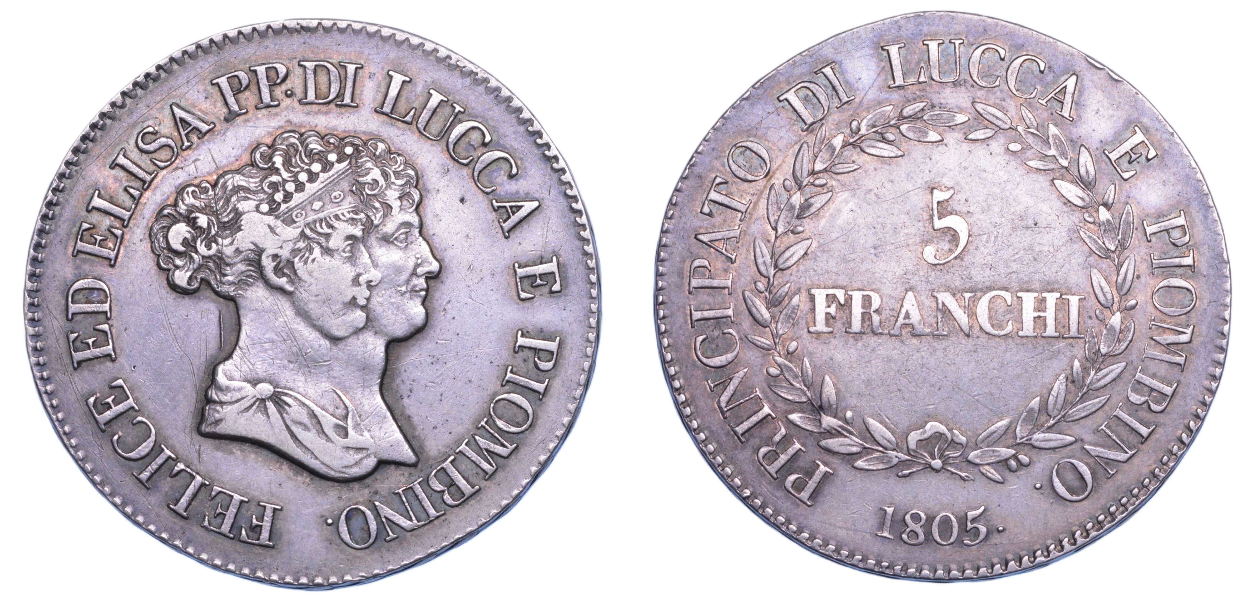 LUCCA. ELISA BONAPARTE E FELICE BACIOCCHI, 1805-1814. 5 Franchi 1805.