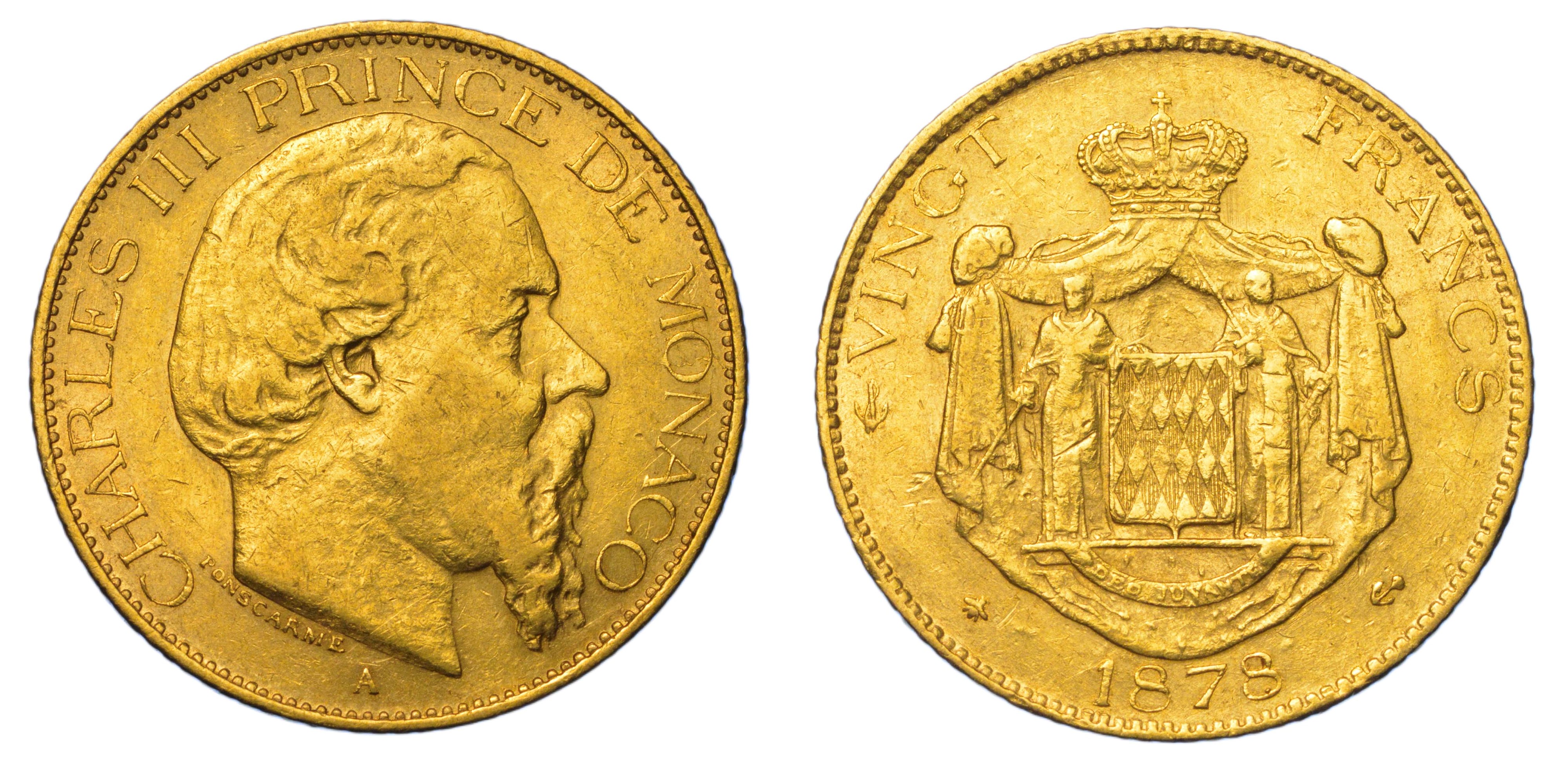 MONACO. CHARLES III, 1856-1889. 20 Francs 1878.