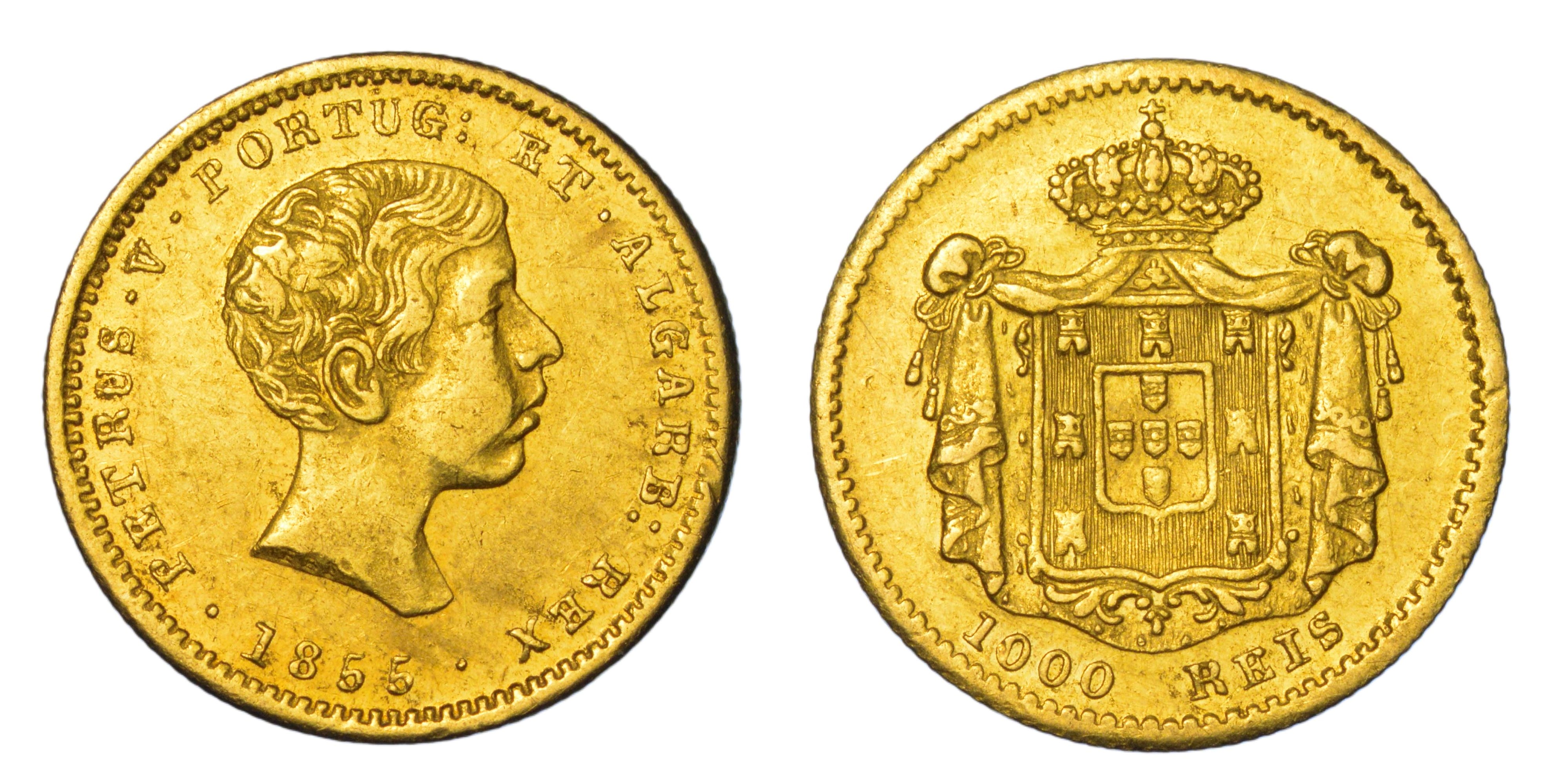 PORTOGALLO. PEDRO V, 1853-1861. 1000 Reis 1855.