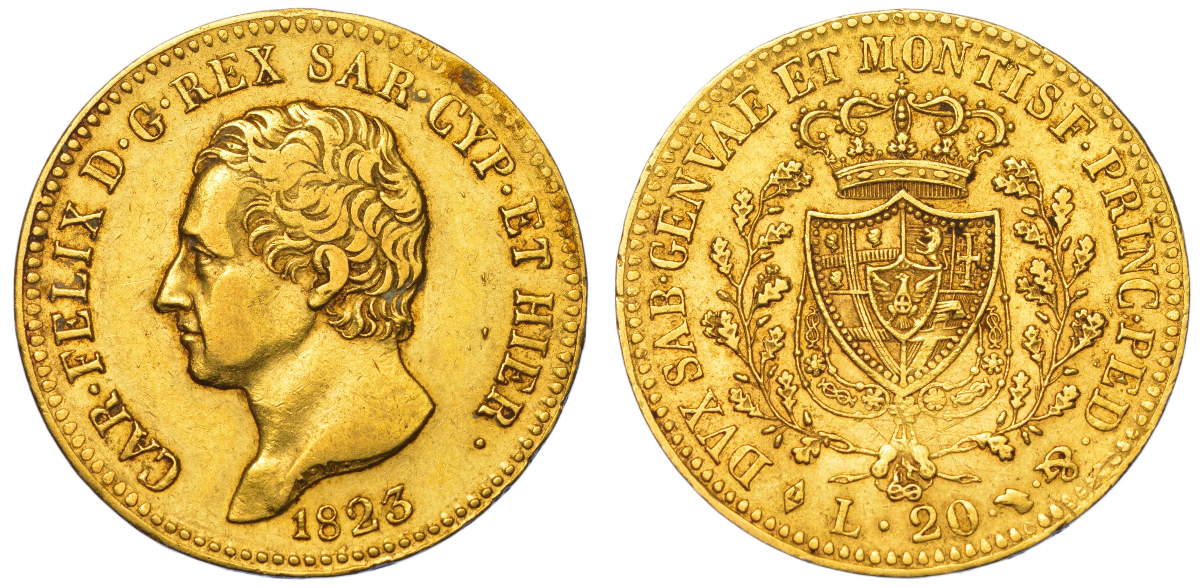 REGNO DI SARDEGNA. CARLO FELICE DI SAVOIA, 1821-1831. 20 Lire 1823. Torino.