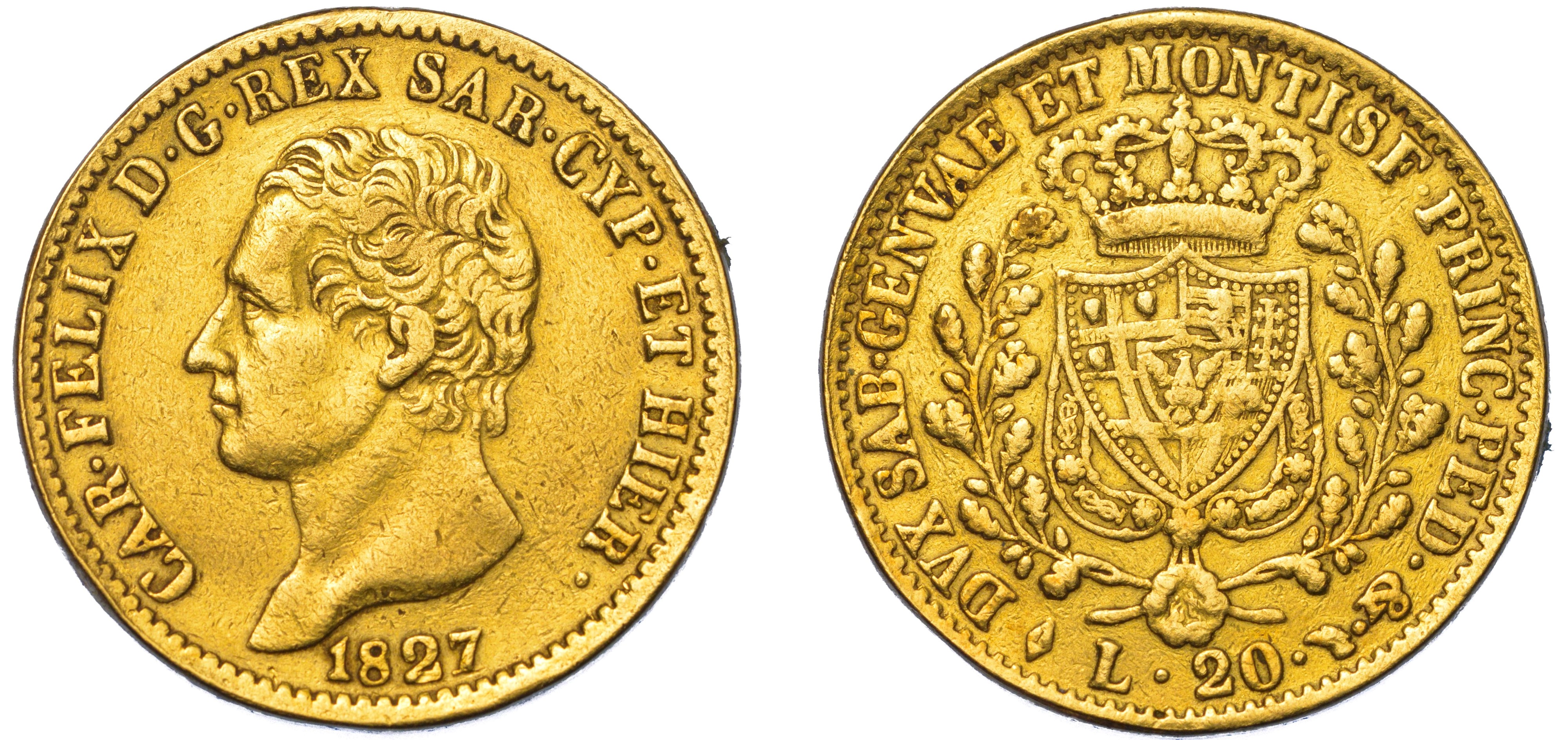 REGNO DI SARDEGNA. CARLO FELICE DI SAVOIA, 1821-1831. 20 Lire 1827. Torino.