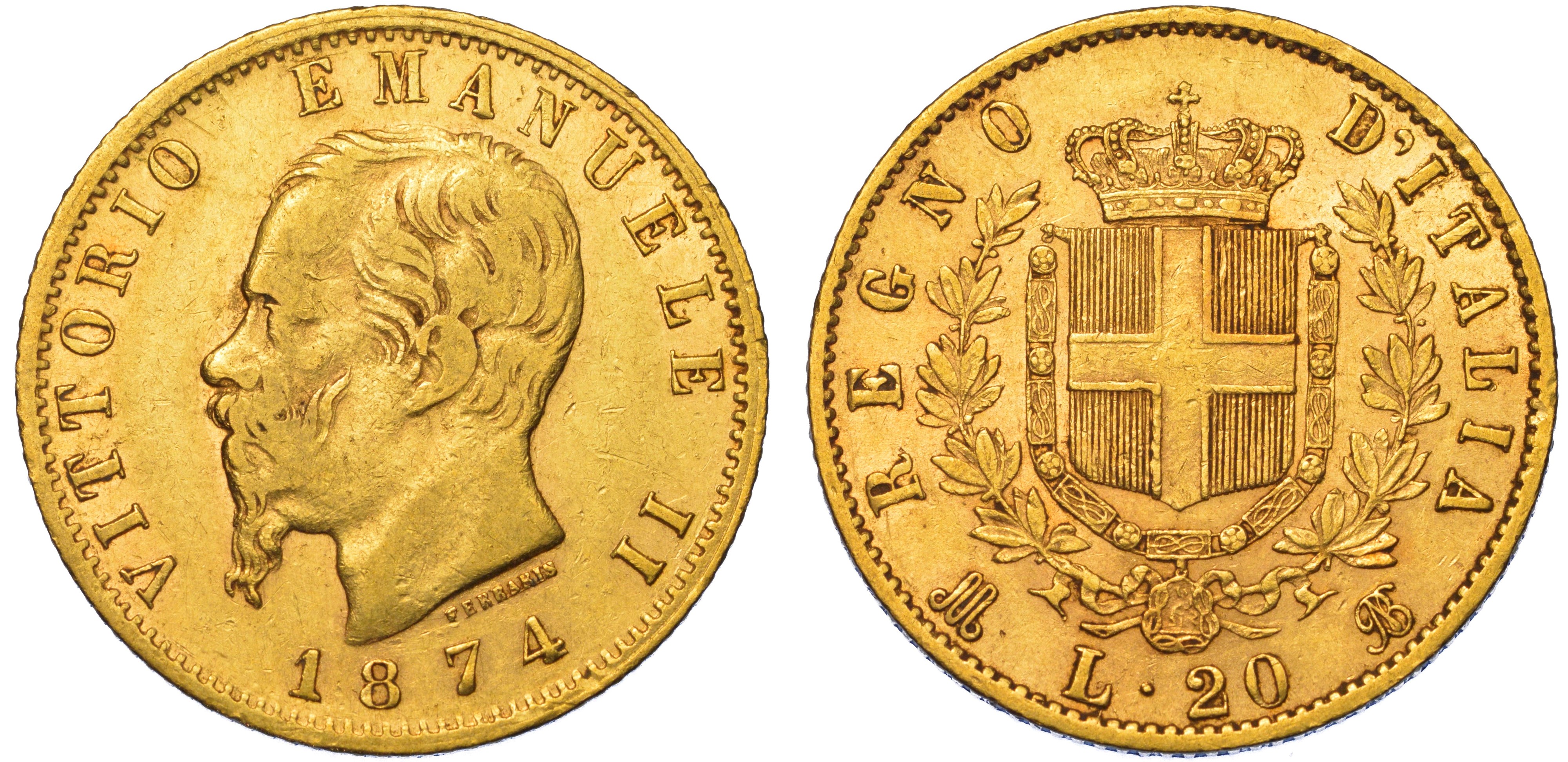 REGNO D'ITALIA. VITTORIO EMANUELE II DI SAVOIA, 1861-1878. 20 Lire 1874. Milano.