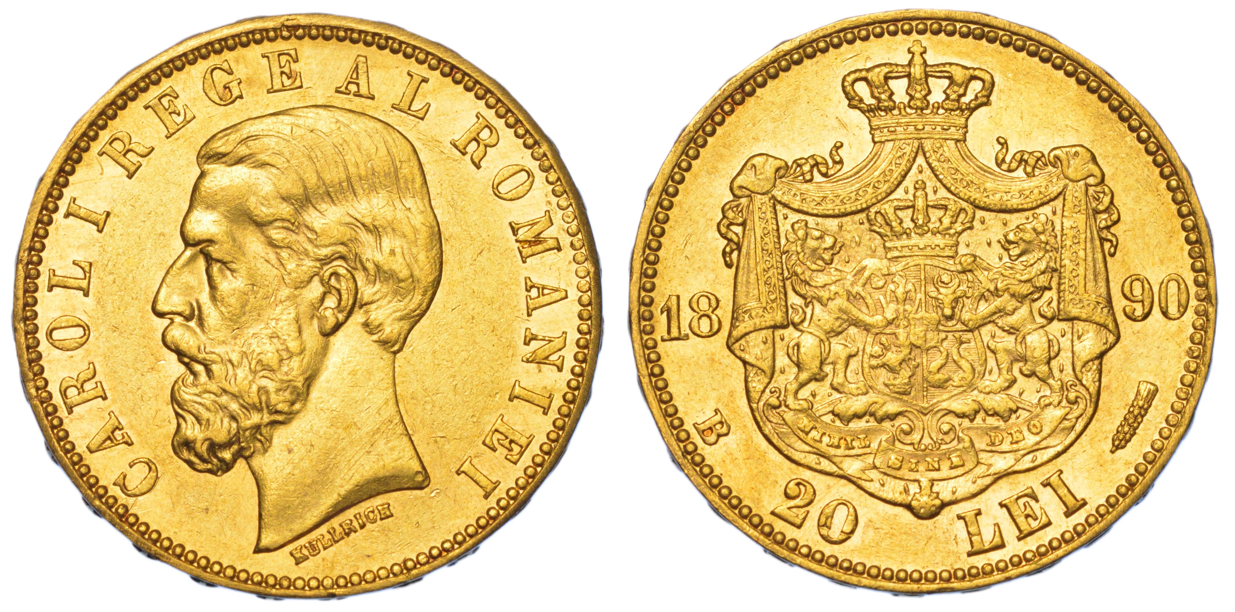 ROMANIA. CAROL I, 1866-1914. 20 Lei 1890.