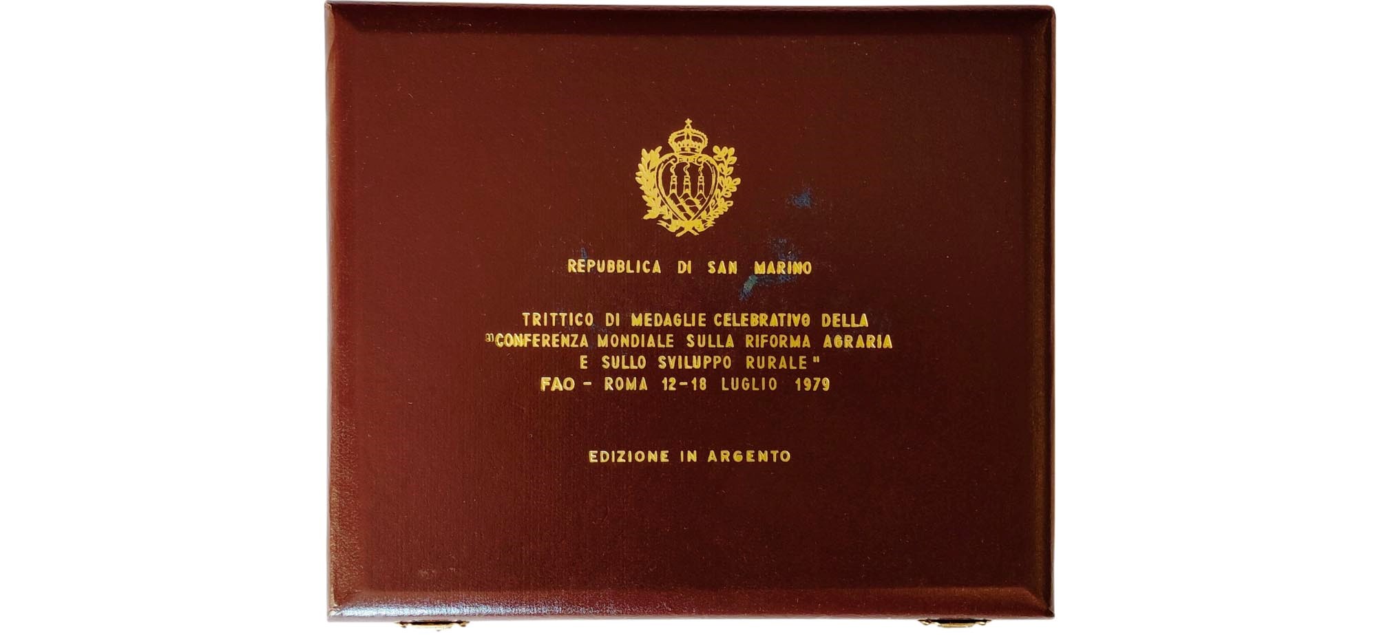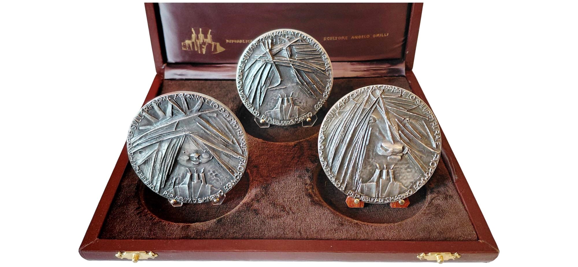 San Marino 1979: trittico di medaglie in argento 800‰ celebrative della Conferenza mondiale sulla Riforma Agraria e sullo Sviluppo Rurale - 12-18 luglio 1979. Edizione in argento.