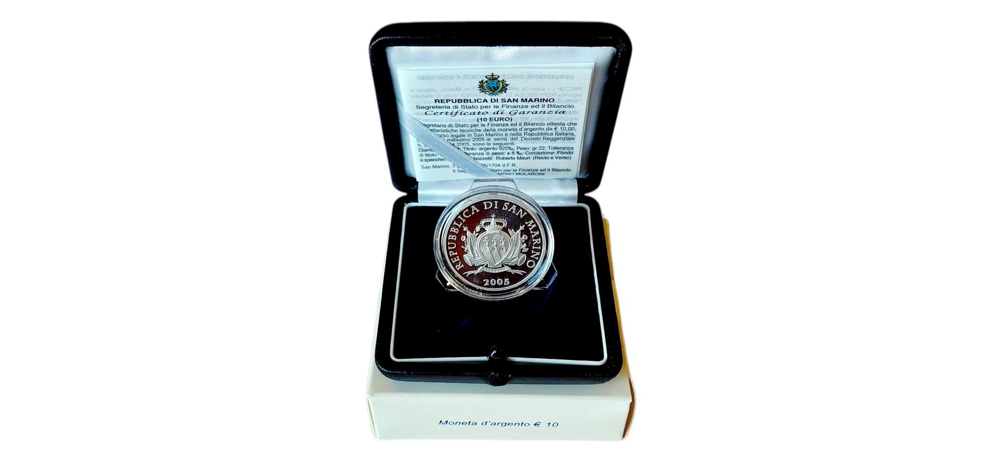 San Marino 2005: moneta celebrativa da 10 Euro Fondo Specchio in argento.