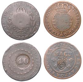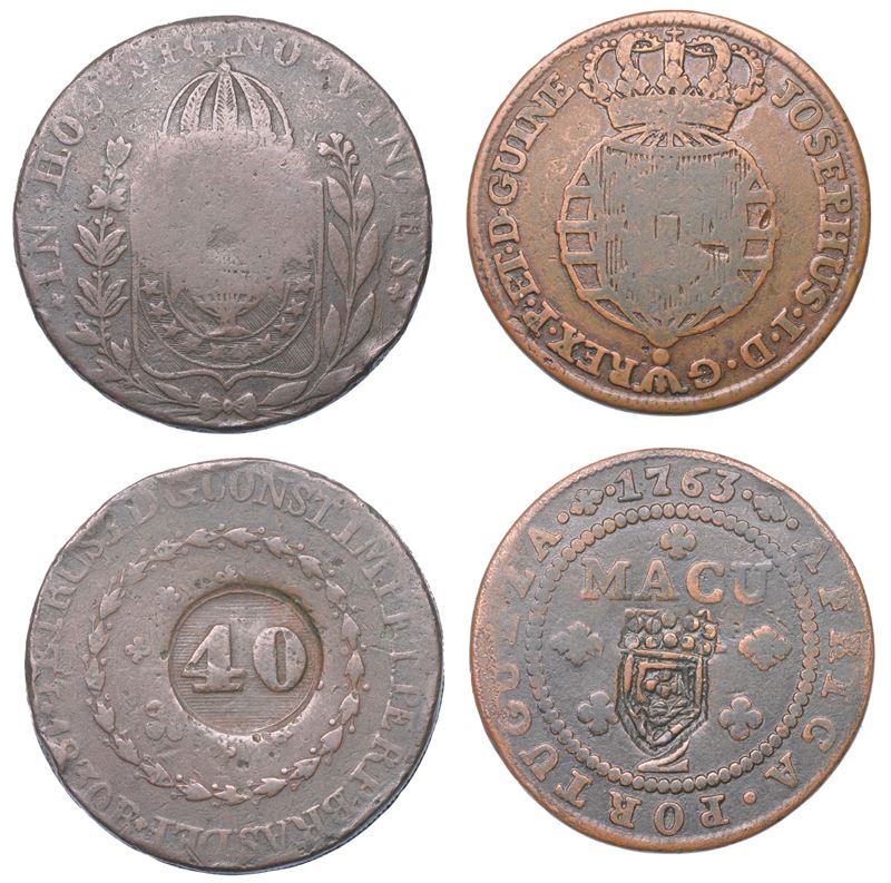 ANGOLA. JOSE’ I, 1750-1777. 1/2 Macuta 1763 con contromarca di Maria II (1834-1853). g. 17,63. Diam. mm. 37,2. Rame. B/MB - BRASILE. 40 Reis contromarcati su moneta da 80 Reis. g. 26,54. Diam. mm. 38,19. Rame. B