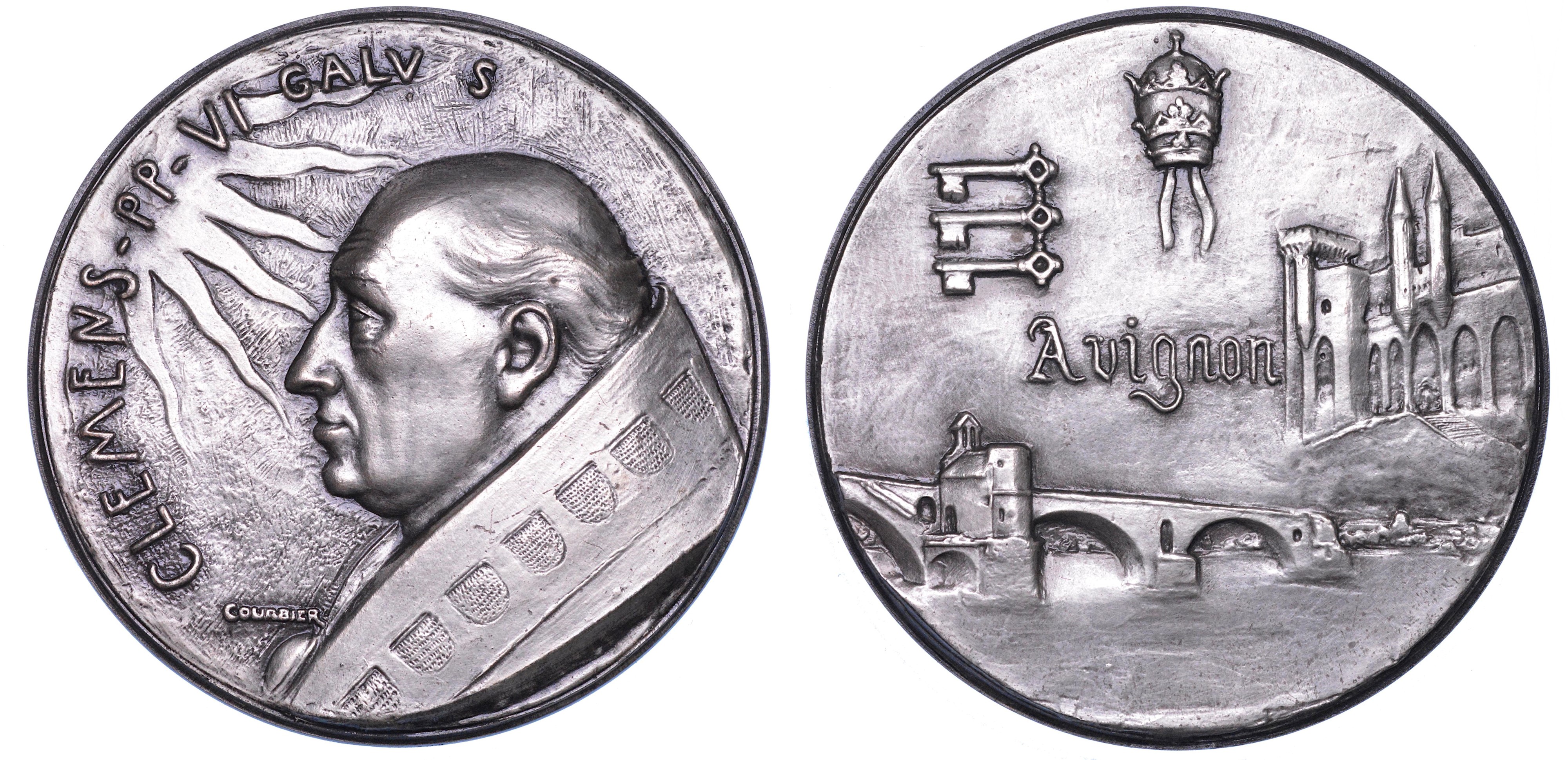 STATO PONTIFICIO. CLEMENTE 1342-1352. Medaglia straordinaria in argento s.d. riconio. Commemorativa di Avignone.