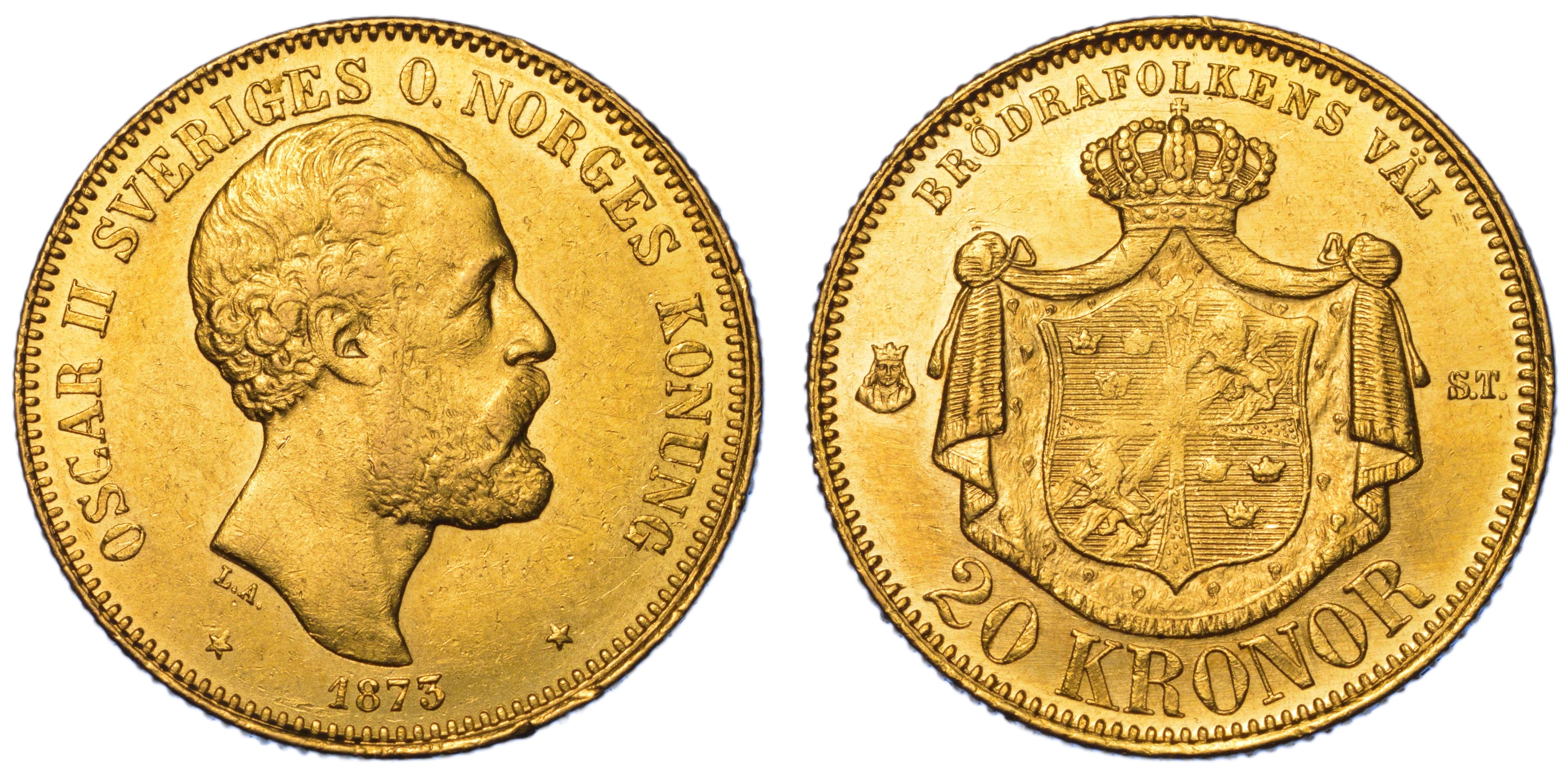 SVEZIA. OSKAR II, 1872-1907. 20 Kronor 1873.