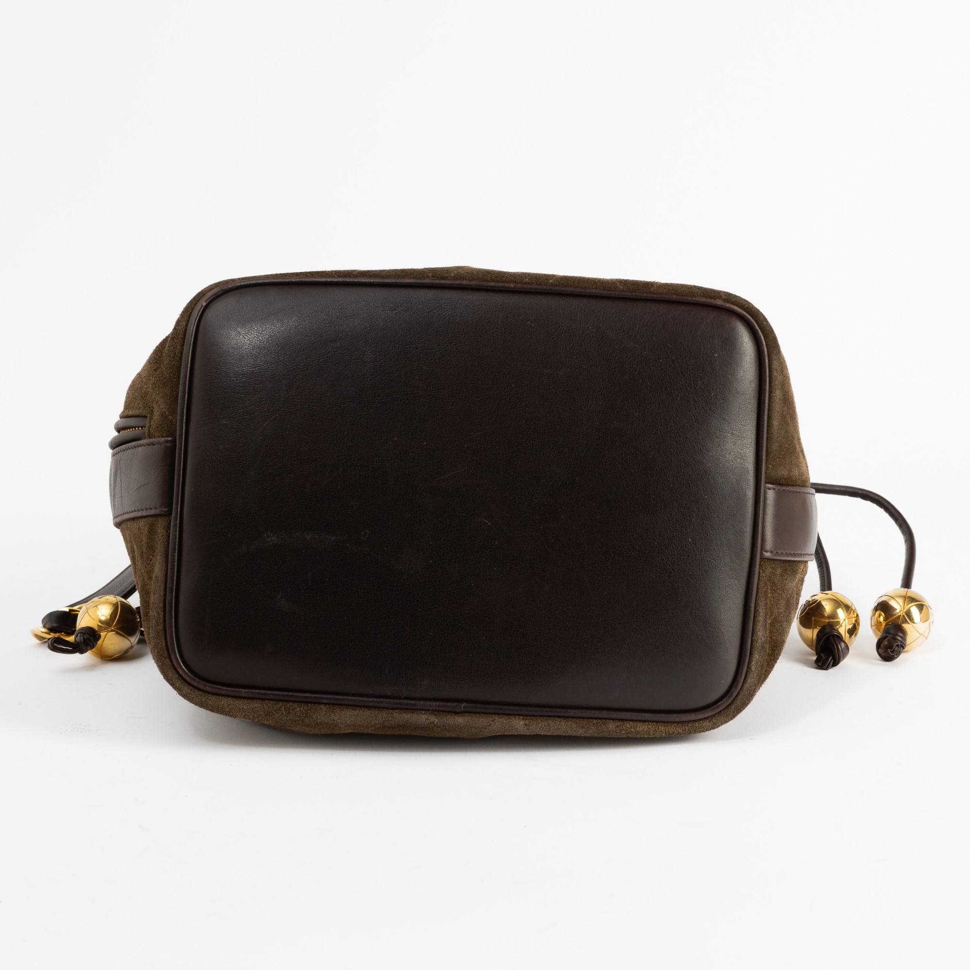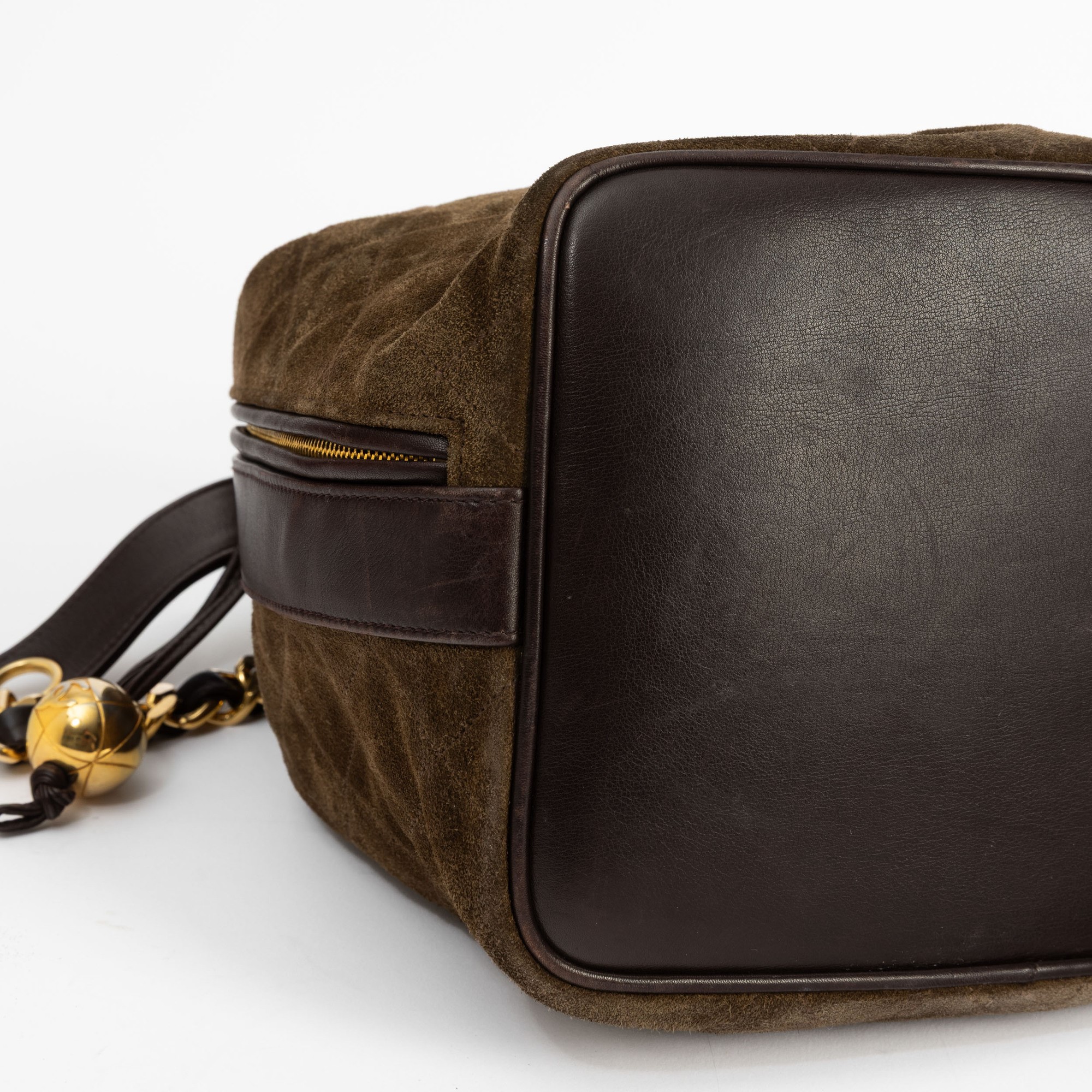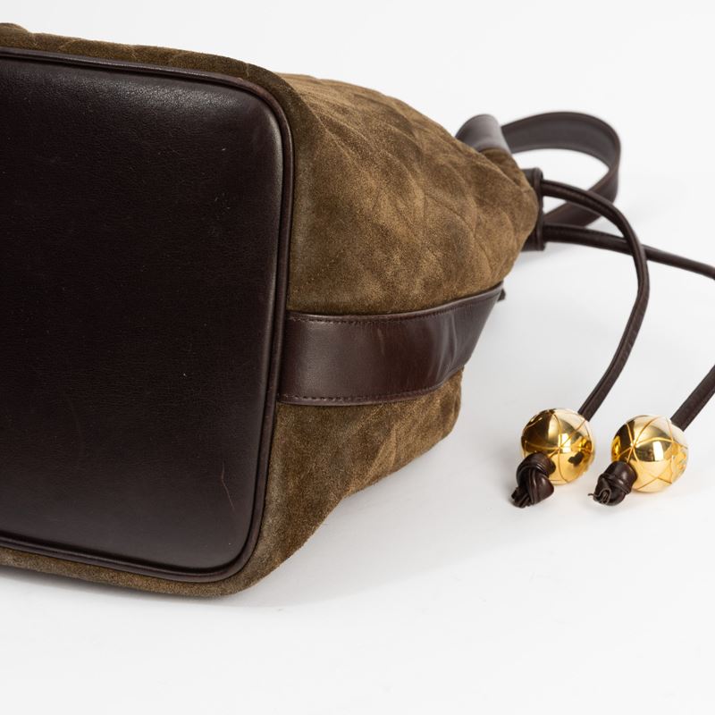 In quilted suede e pelle con hardware dorato.