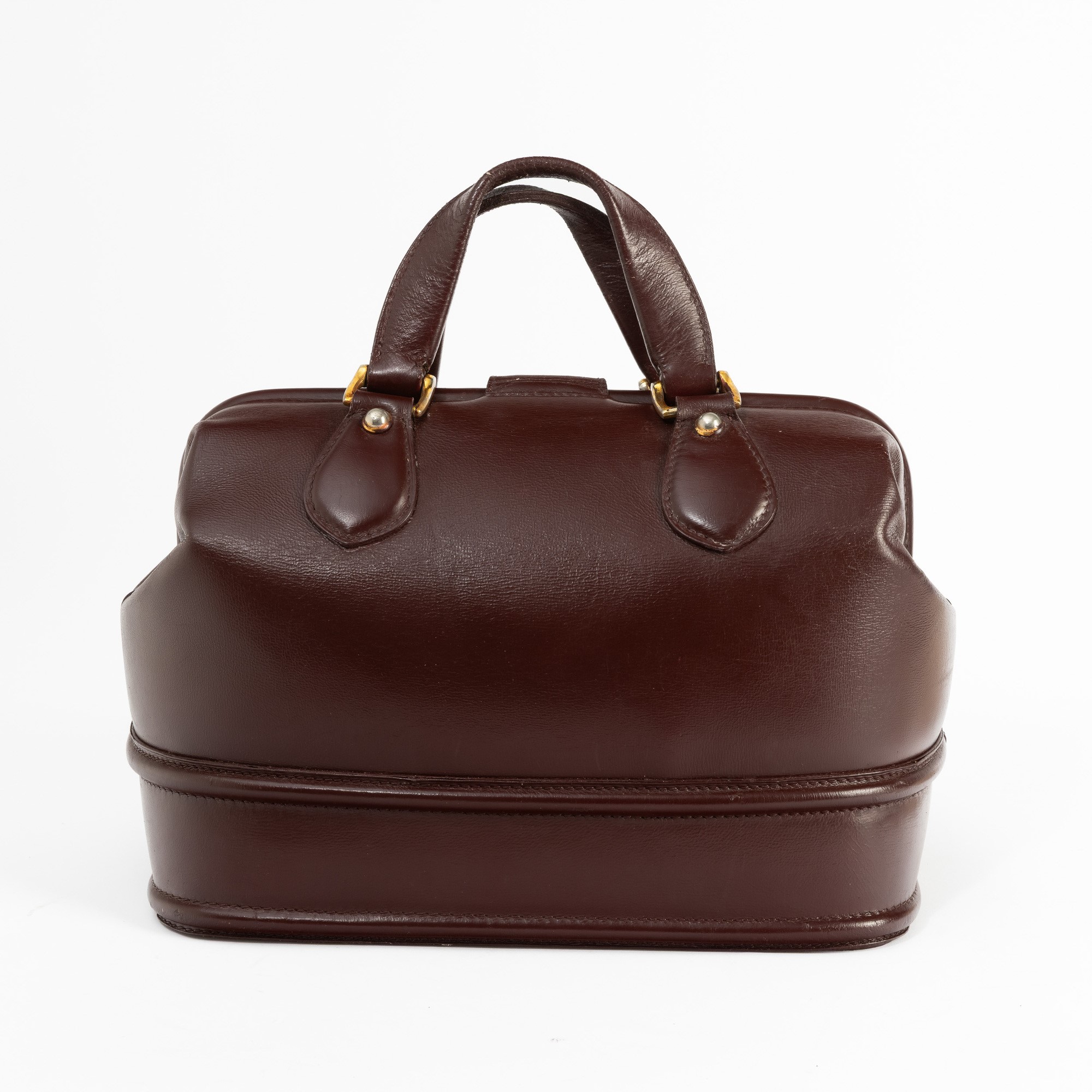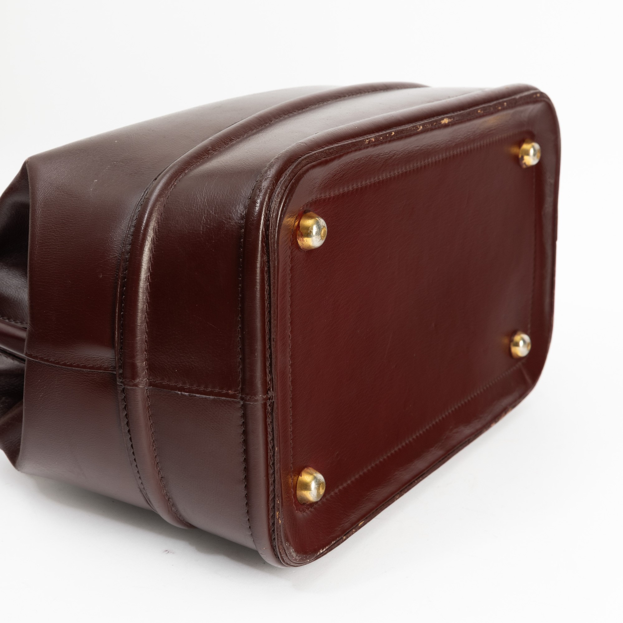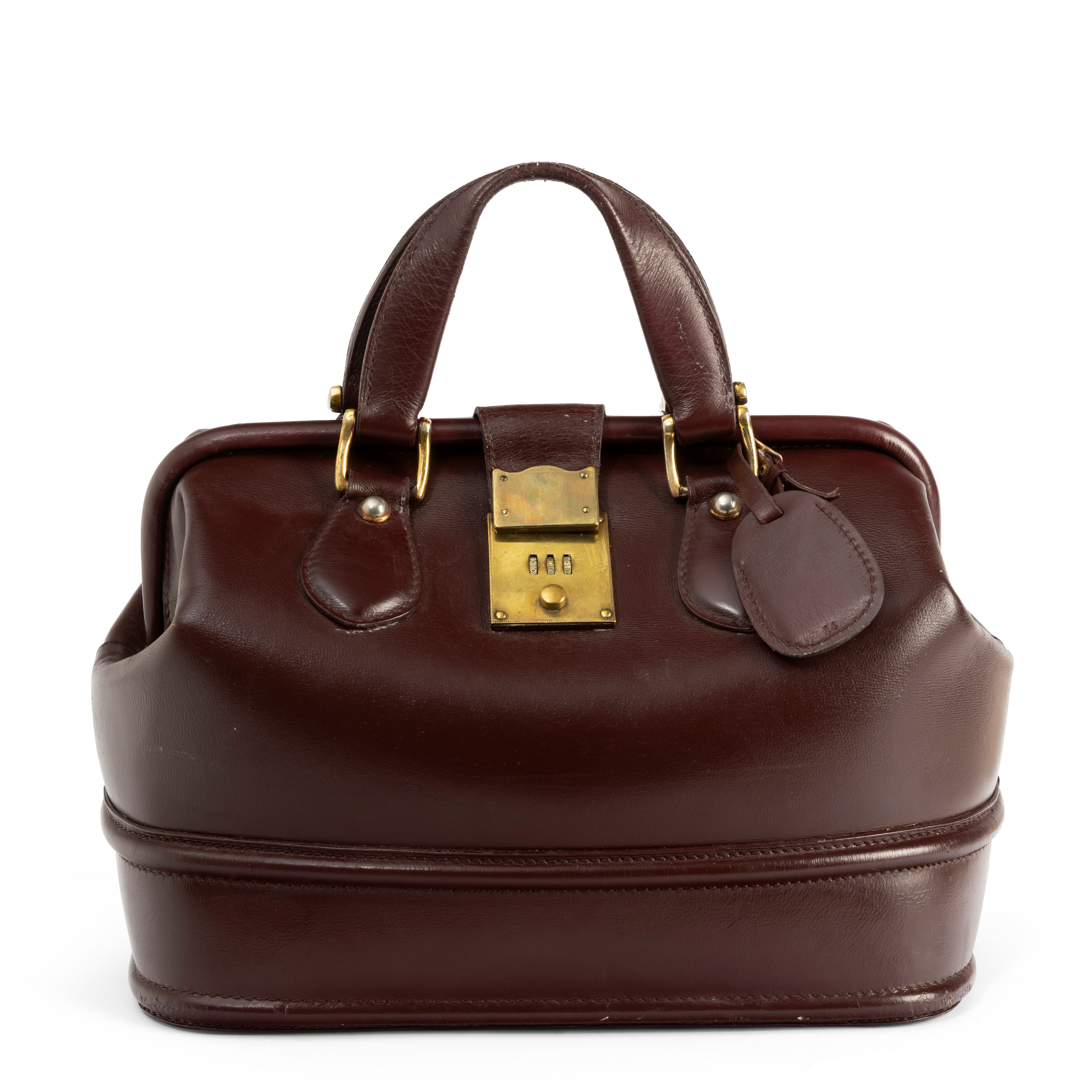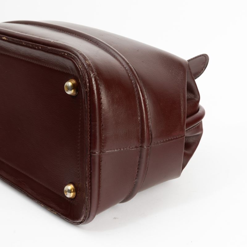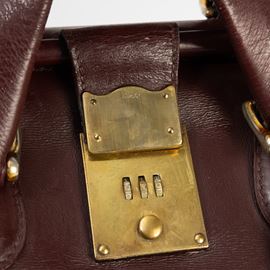 In pelle bordeaux e hardware ottone.