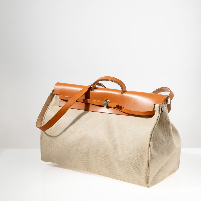 In tela "H" beige e cuoio. Anno 1998 circa.
