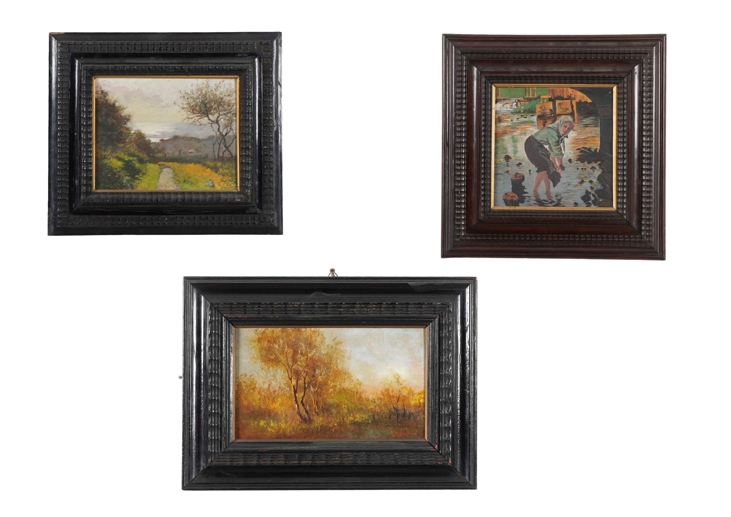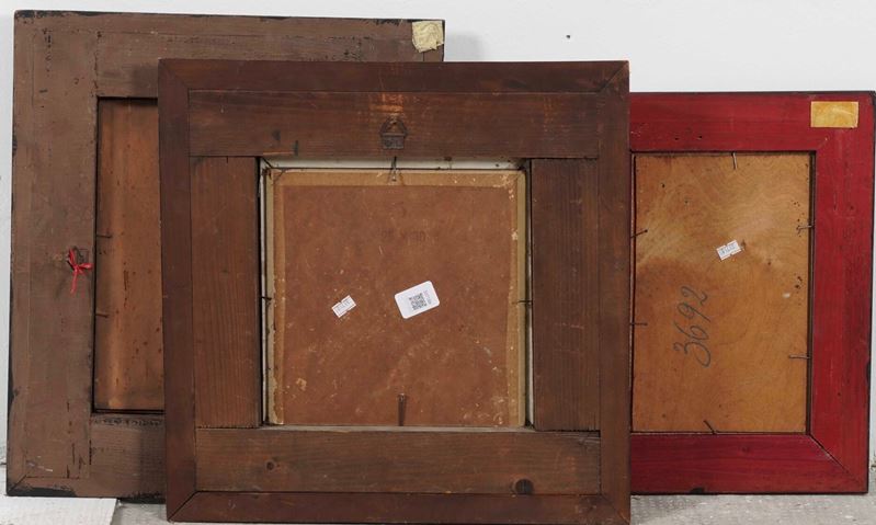 Lotto di tre dipinti in cornici intagliate