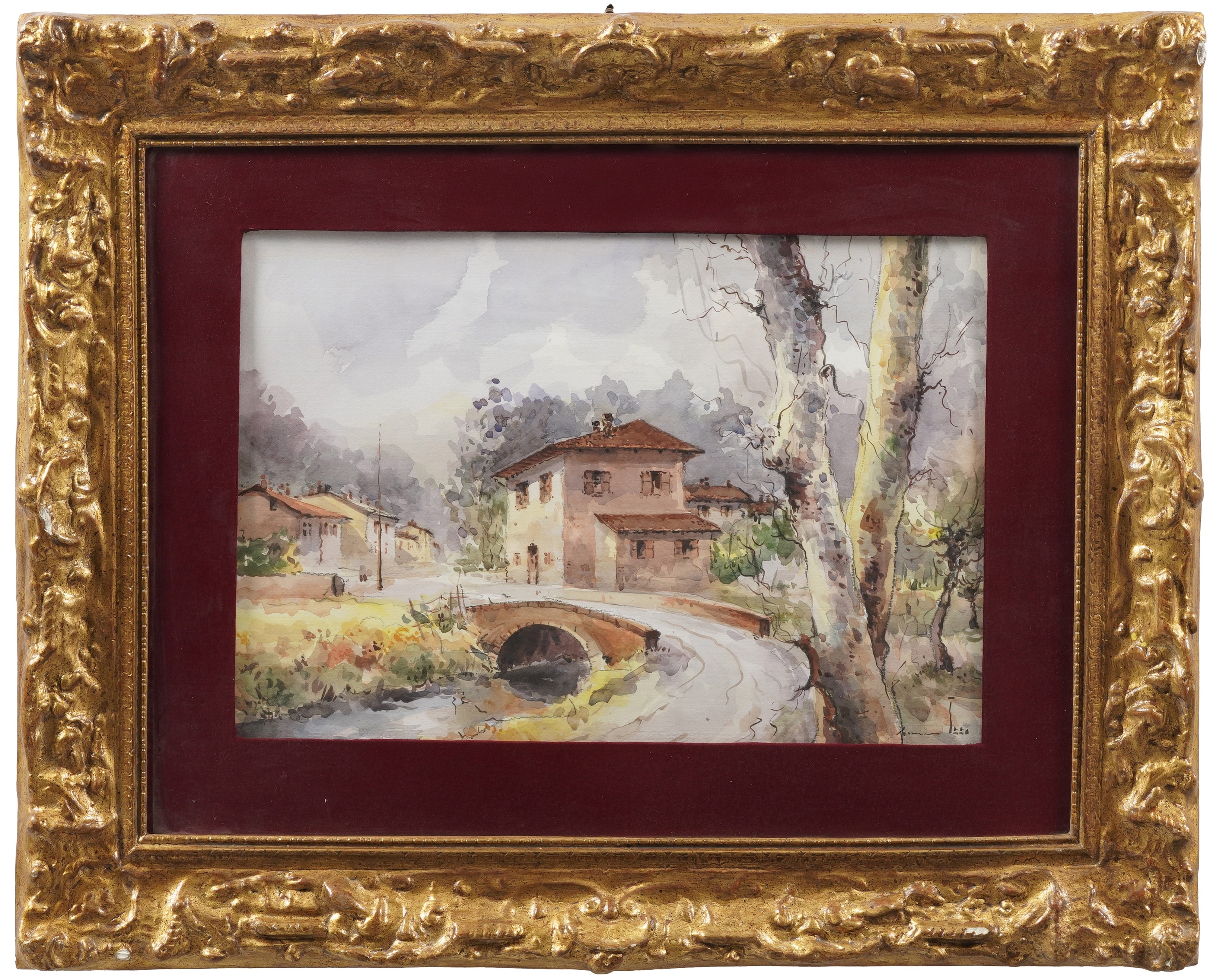 Pittore del XIX-XX secolo Cascina sul fiume
