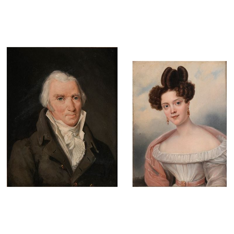 Pittore del XIX-XX secolo Ritratto maschile e ritratto femminile