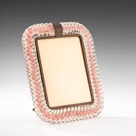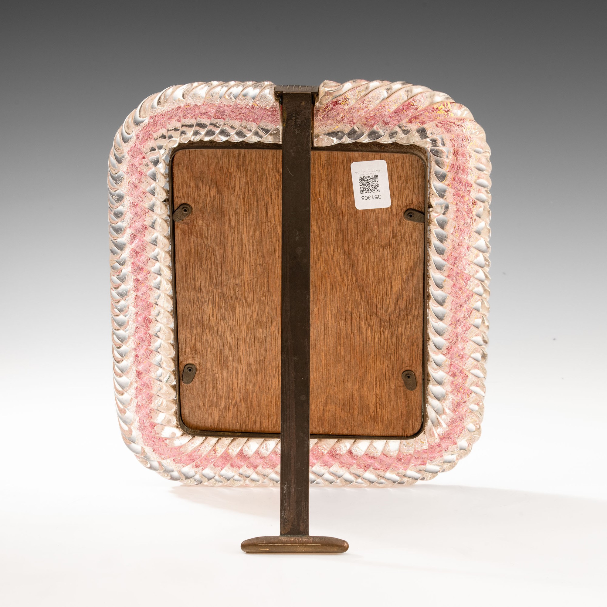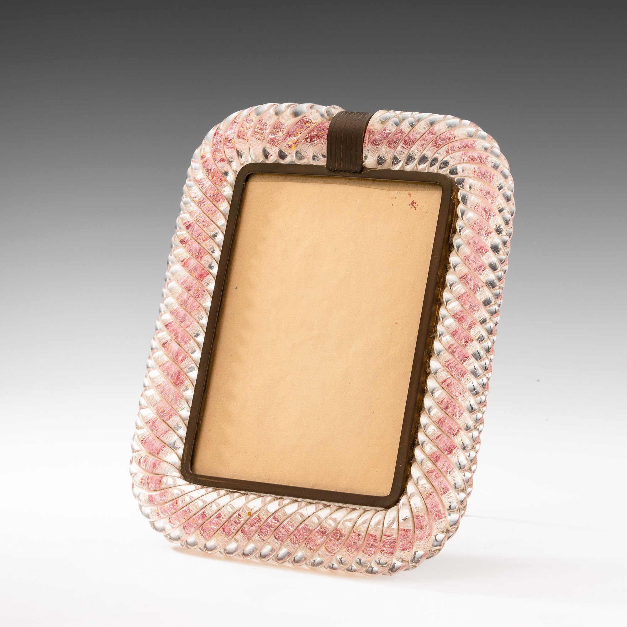 Rare picture frame in brass with twisted sommerso glass frame and bubble decoration with gold leaf inclusion. Incised mark.