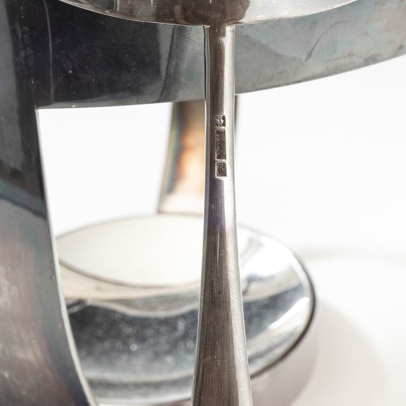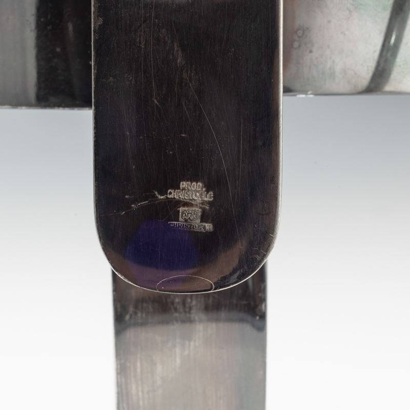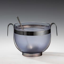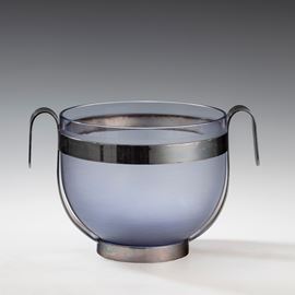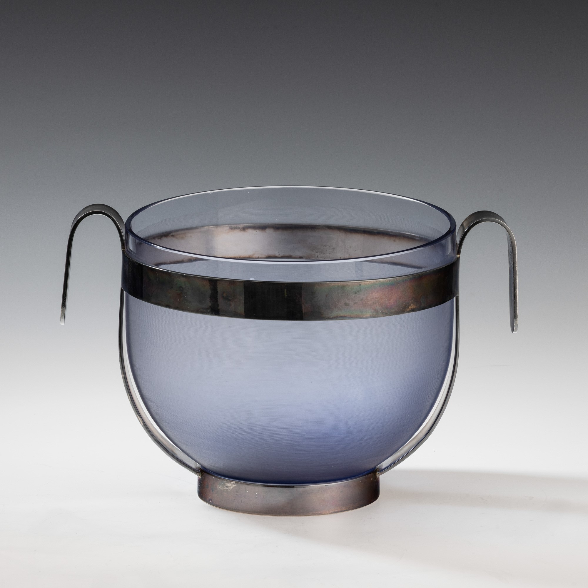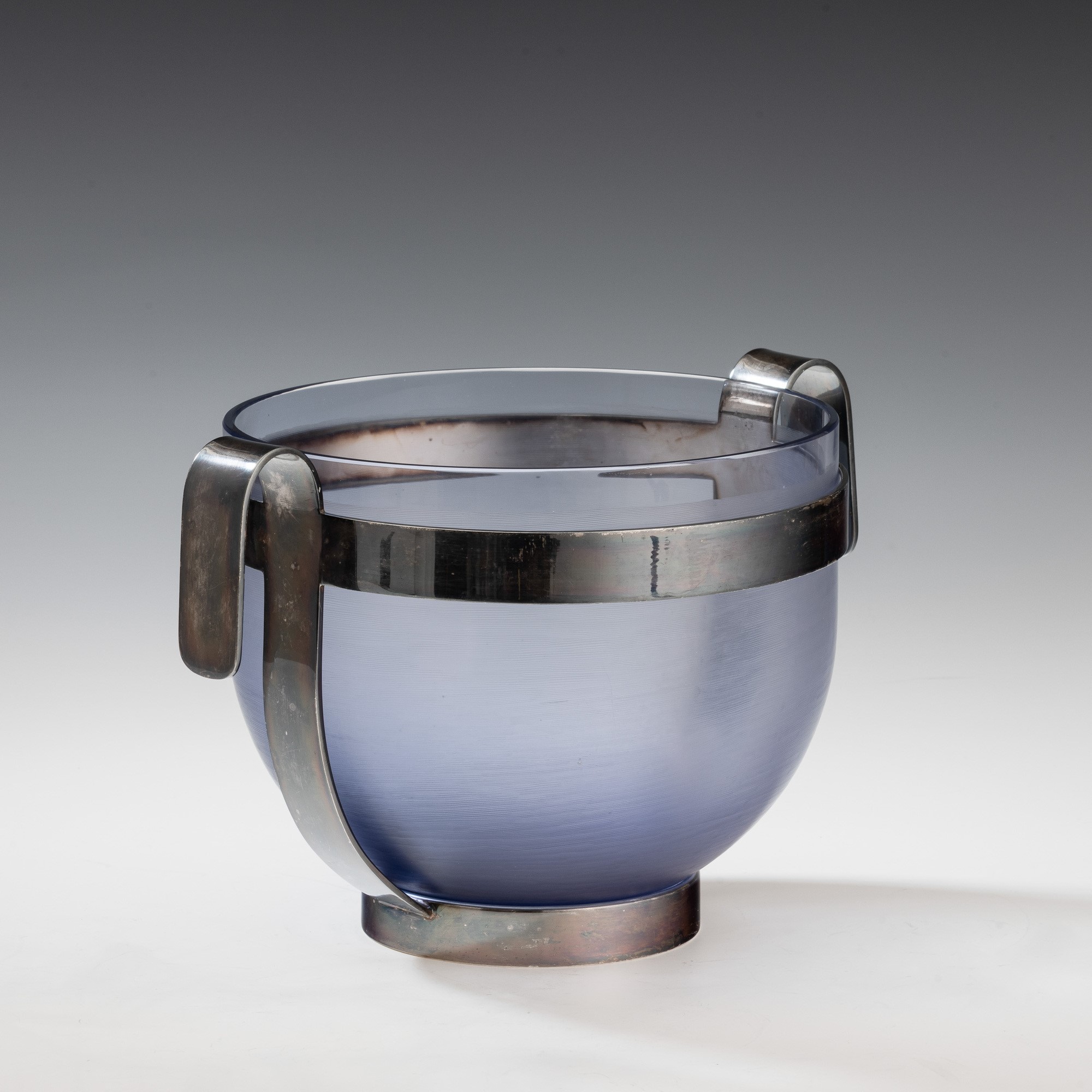 Large bowl in blown glass with fully wheel-engraved surface, set within a silver-plated metal mount. Christofle impressed mark.