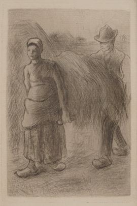 Pissarro, Camille (1830-1903) Figura femminile e figura maschile con fieno