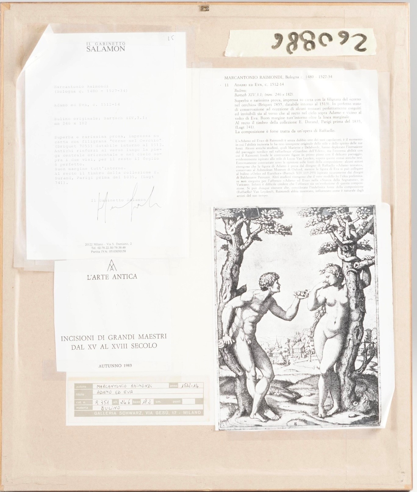 Raimondi, Marcantonio (1480-1527) Adamo ed Eva, 1512-14