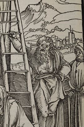 Silografia tratta dalla sedie della Passione di Cristo. Esemplare rifilato, su carta sottile, testo latino al recto. Tiratura ben inchiostrata ma presumibilmente tarda. Dimensioni mm 244x170