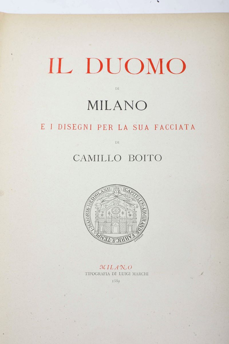 Boito, Camillo (1836-1914) Il Duomo di Milano e i disegni per la sua facciata.. Milano, Tipografia di Luigi Marchi, 1889