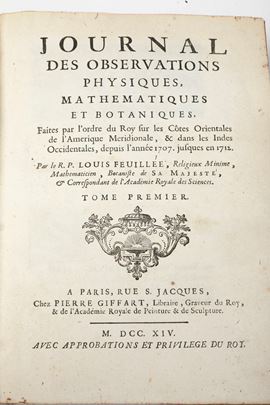 Feuilllee, Louis (1660-1732) Journal des observations physiques, mathematiques et botaniques..