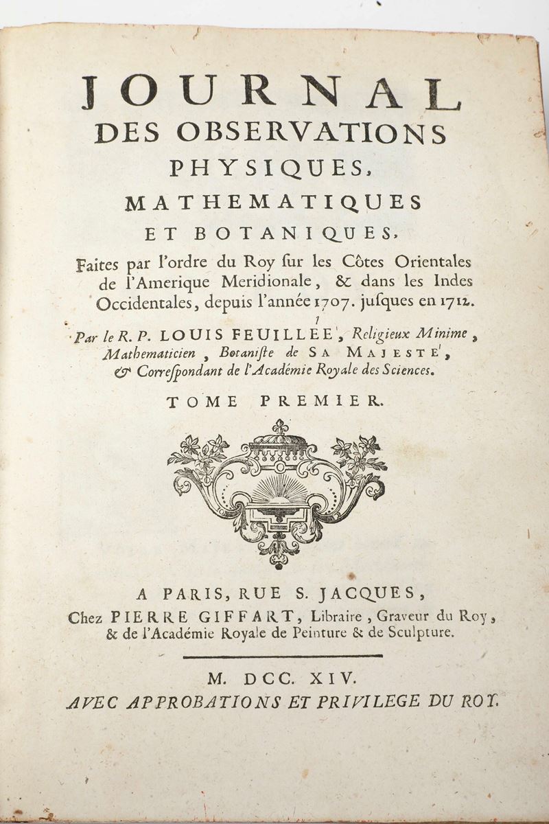 Feuilllee, Louis (1660-1732) Journal des observations physiques, mathematiques et botaniques.. A Paris, chez Pierre Giffart, [..]