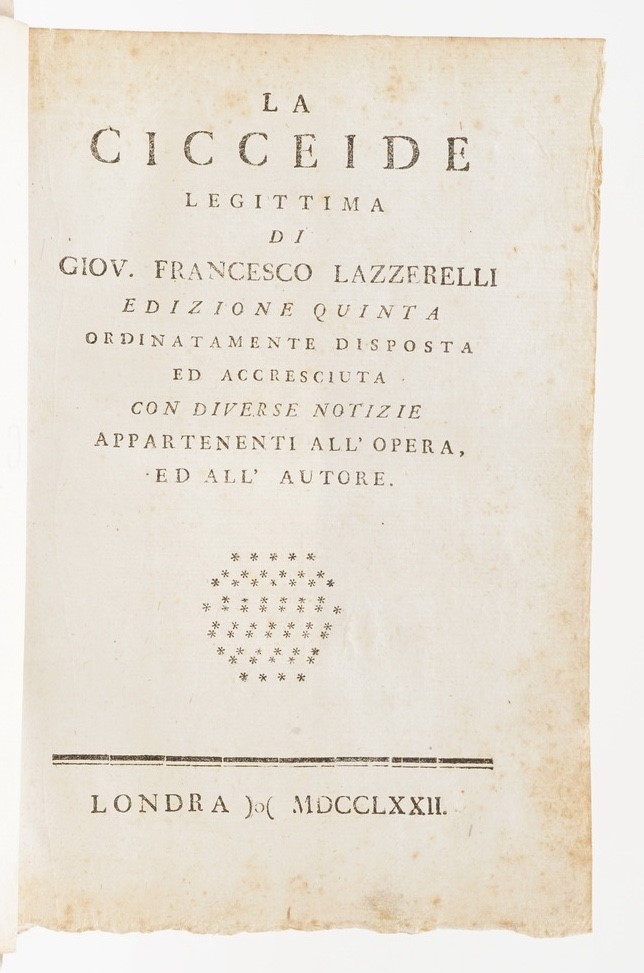 Lazzarelli, Giovanni Francesco (1621-1693) La Cicceide legittima...edizione quinta...Londra,1772.