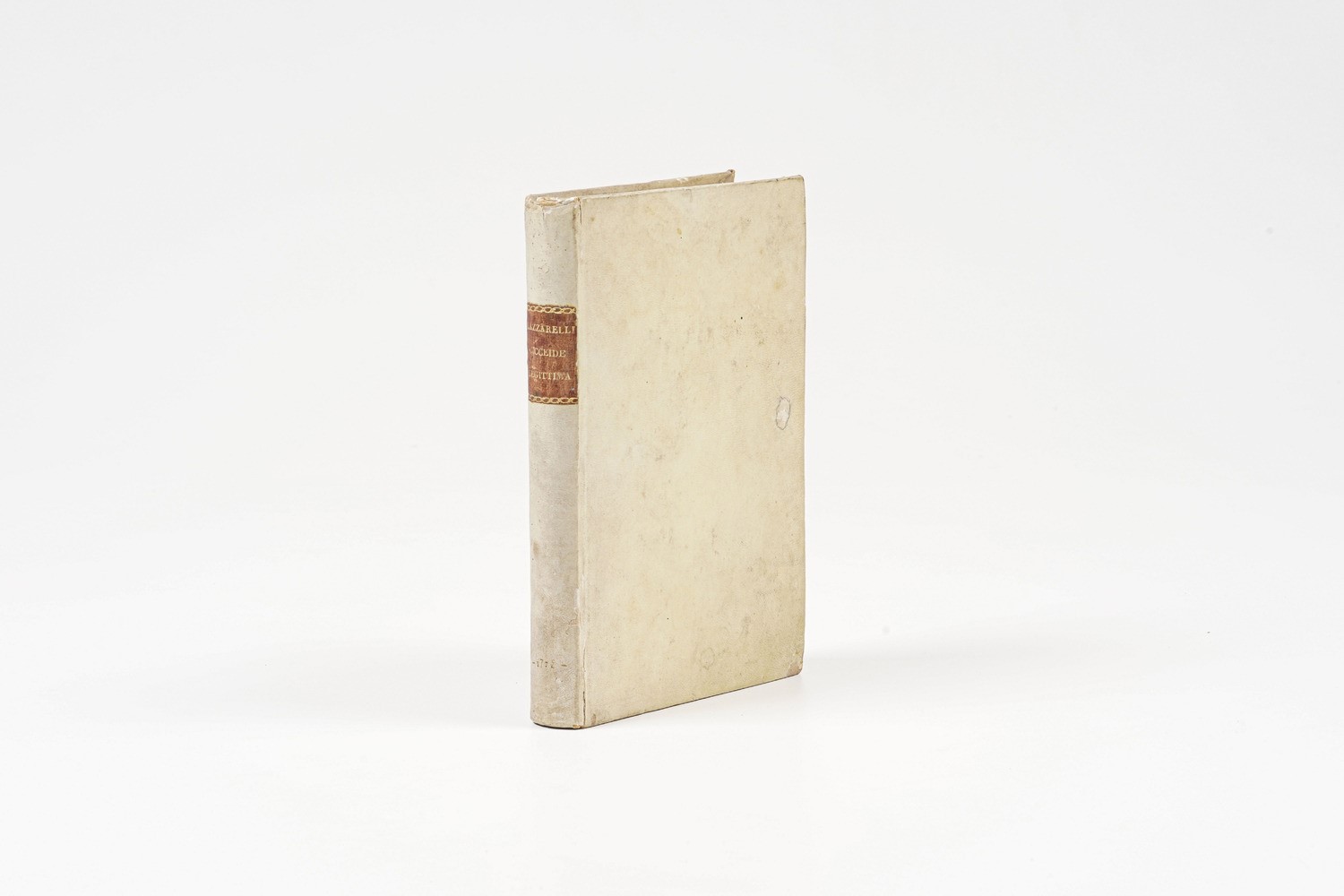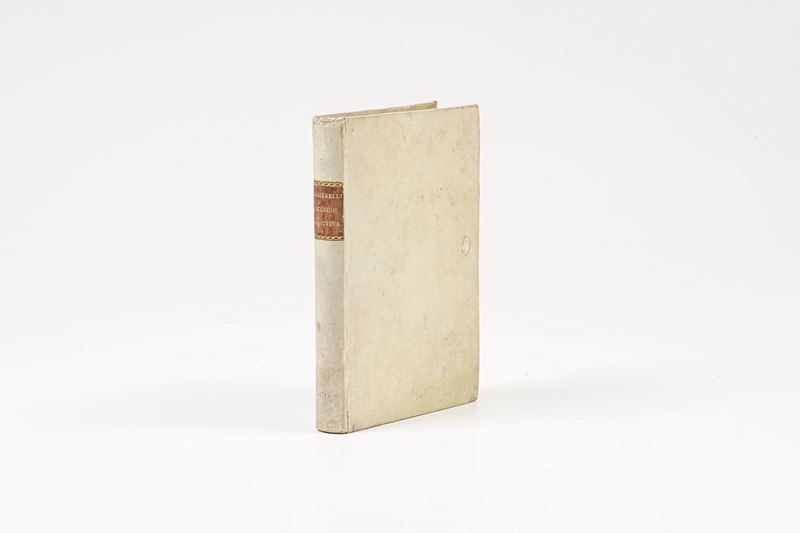 In 8°. Rilegatura coeva in piena pergamena rigida. Ex Libris inciso, applicato al contropiatto anteriore. Buon esemplare in barbe.